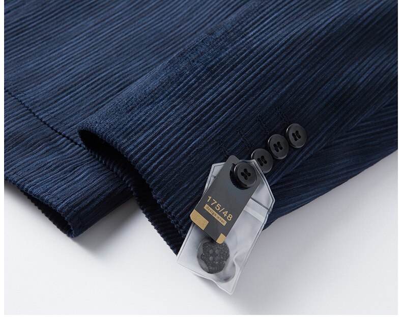 - Classic lapel and pocket details