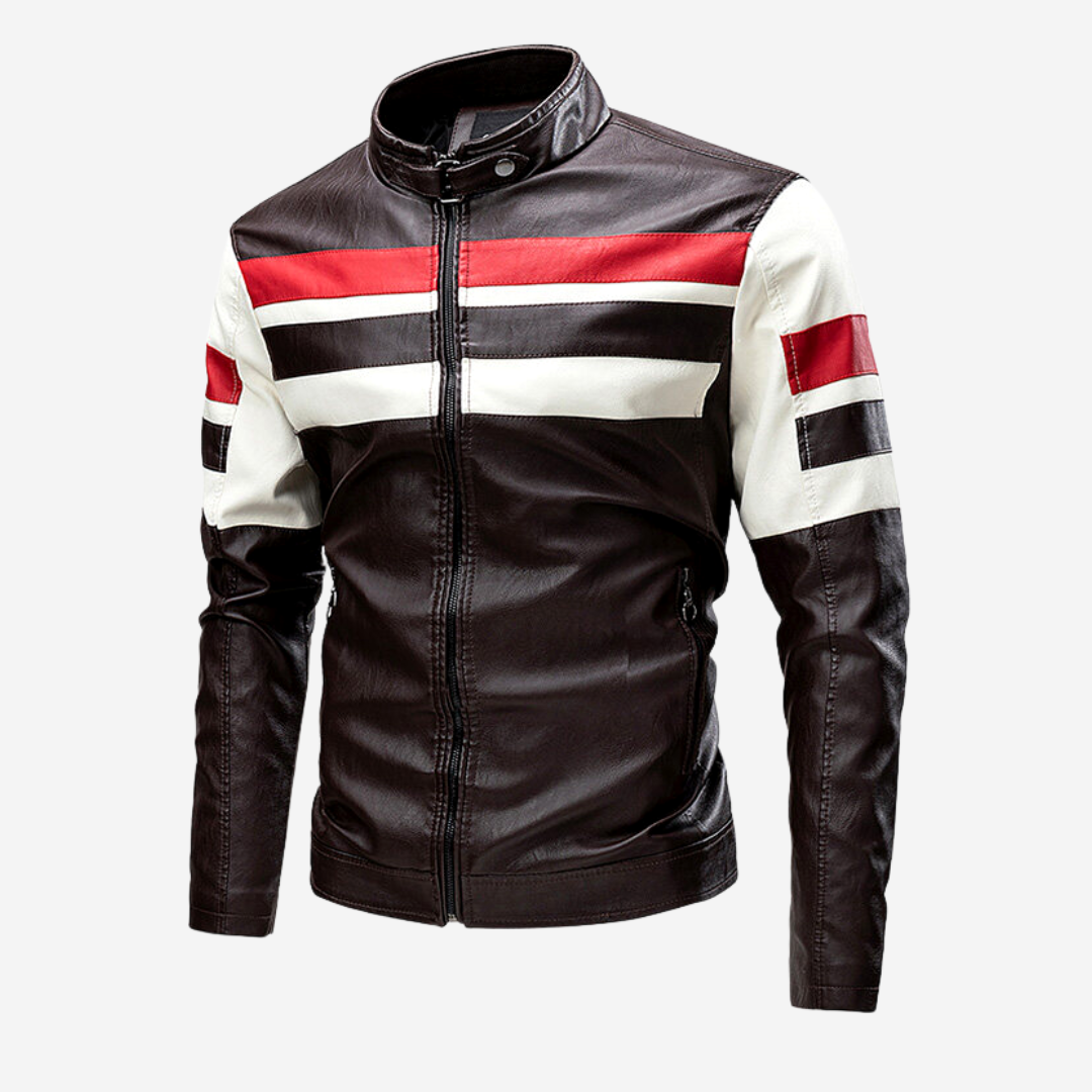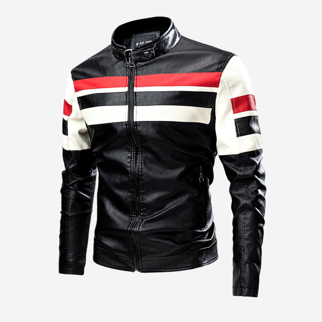 Introducing the Buck Adams Rider Jacket - the perfect leather jacket for bikers! Crafted with premium PU leather, this jacket is both stylish and practical. It features a classic striped design that will turn heads wherever you go.