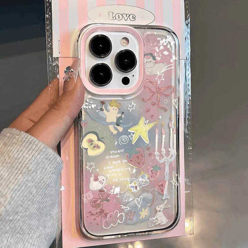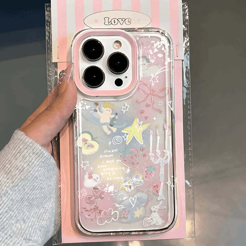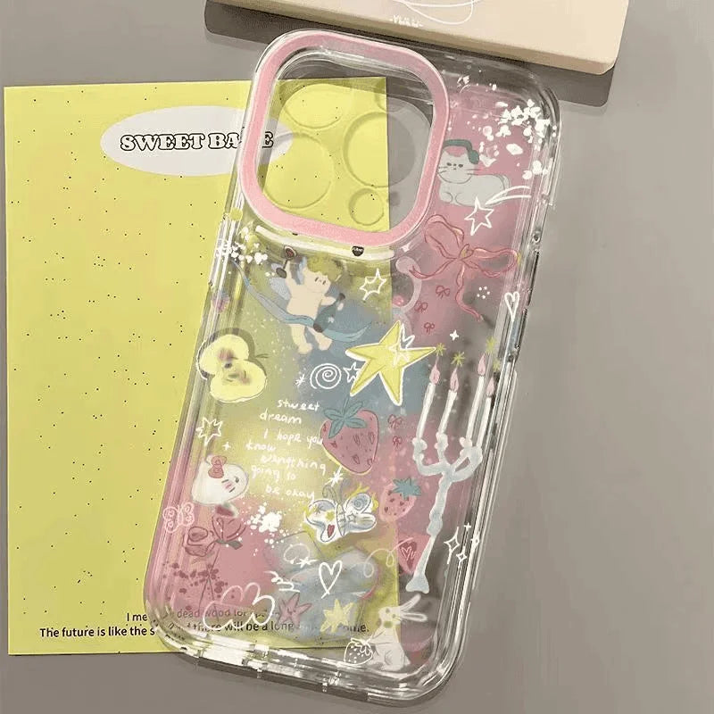 Bubbly cats, twinkling stars, and sweet strawberries come together in a transparent design brimming with Y2K flair. The soft, flexible frame guards your phone while serving up pastel-daydream vibes for everyday scrolling.