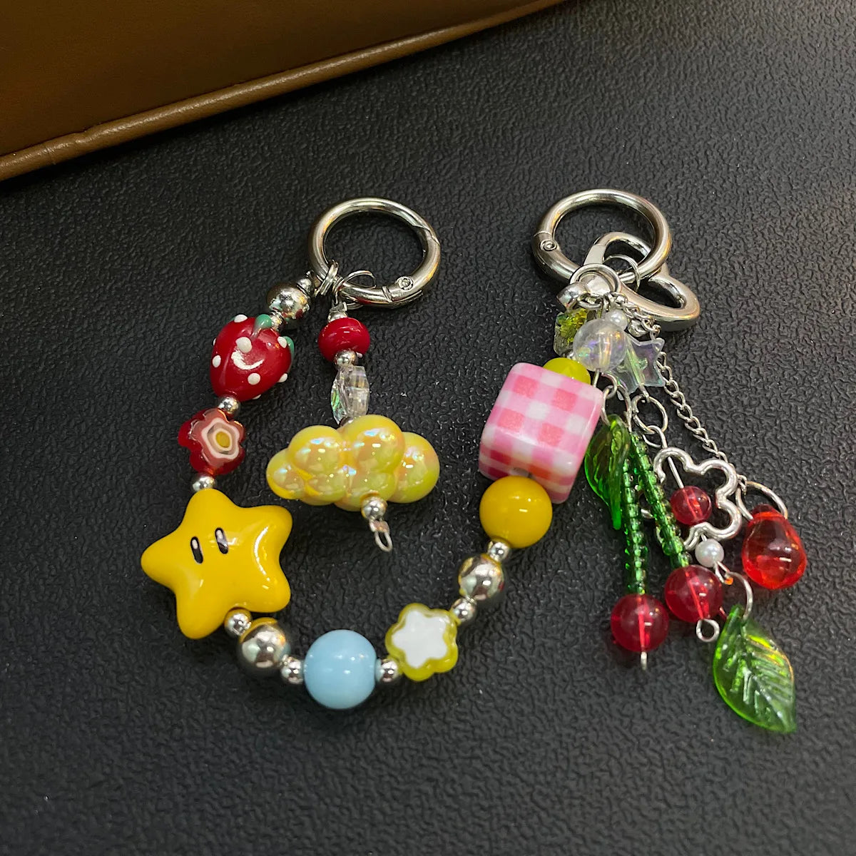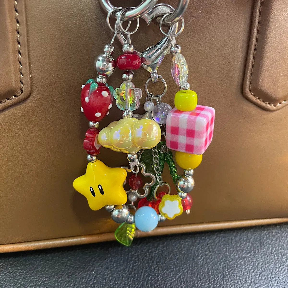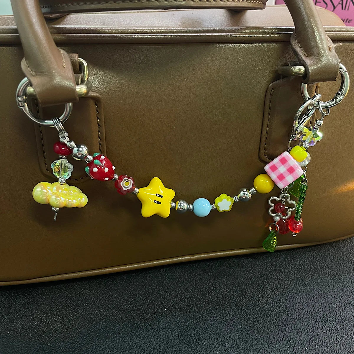 A joyful wristlet chain of hand‑picked glass beads, gingham cube, star and fruit charms that turns your phone into a piece of jewelry. Clips to any case or bag for instant color and a secure, comfortably weighted grip.