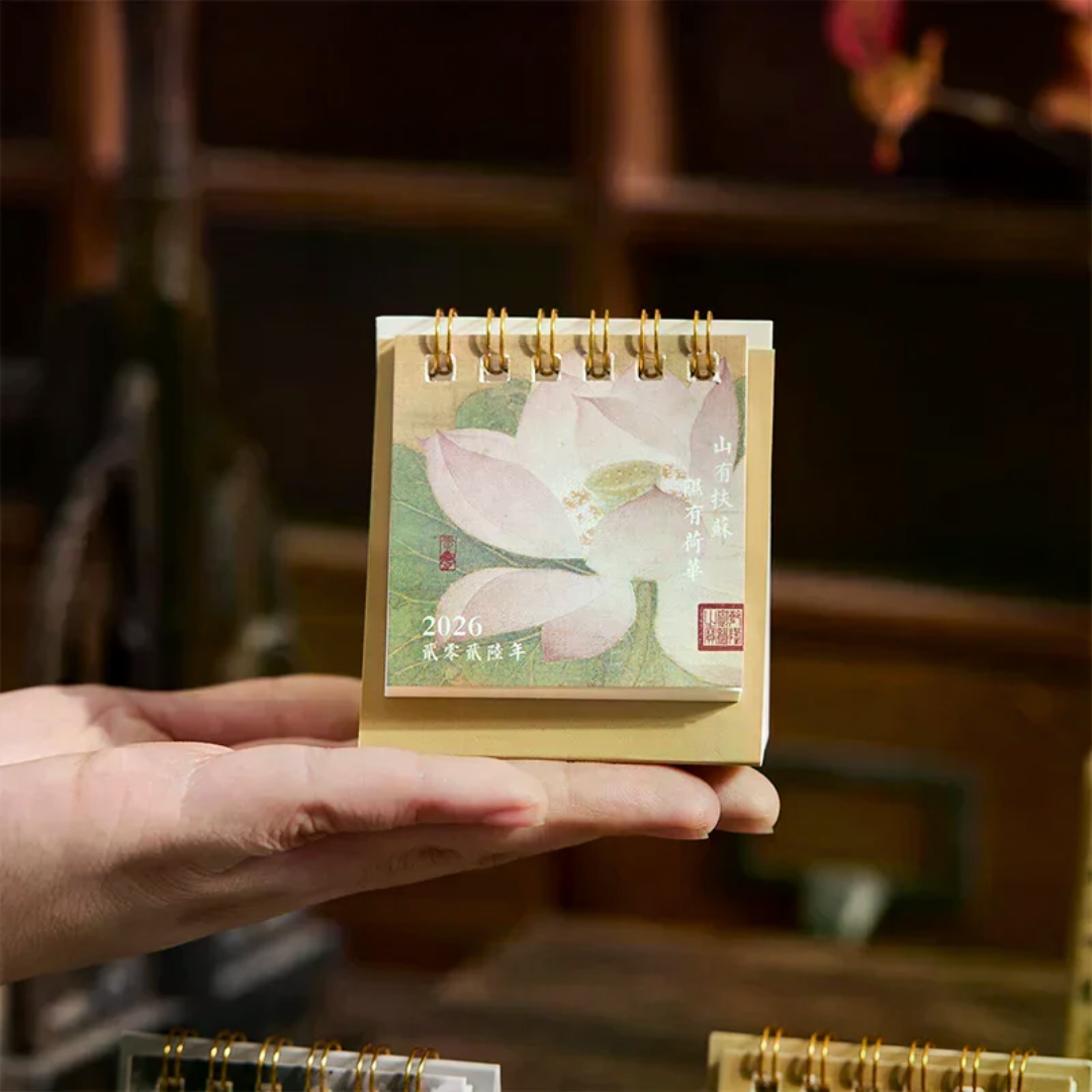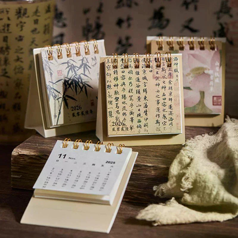 A compact flip-style desk calendar designed for daily notes and décor. Clean, minimal, and made for desktops rather than gifting impact.