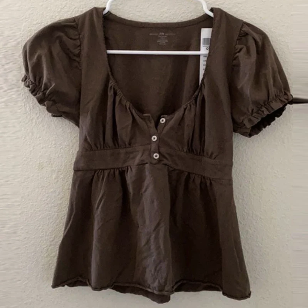 - Short puff sleeves for a flattering shape