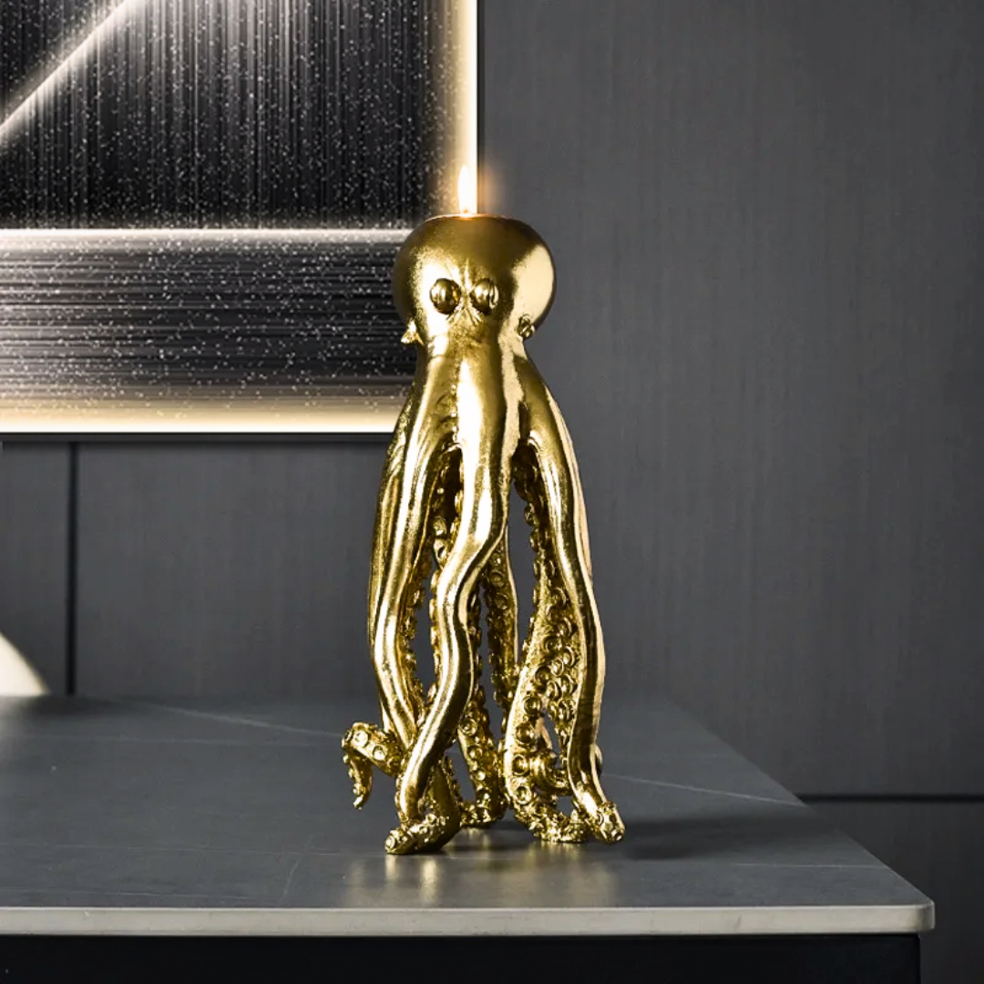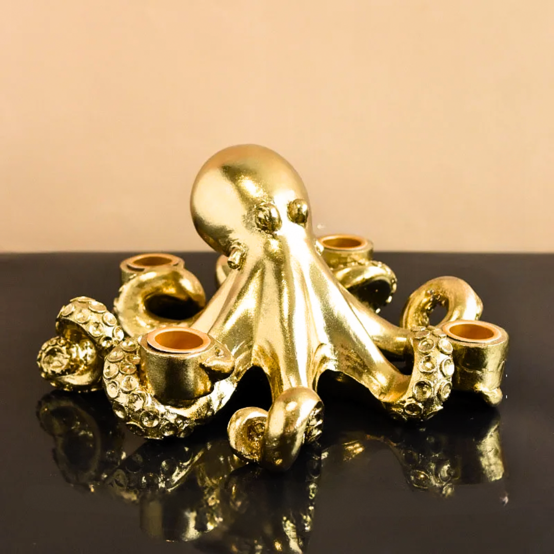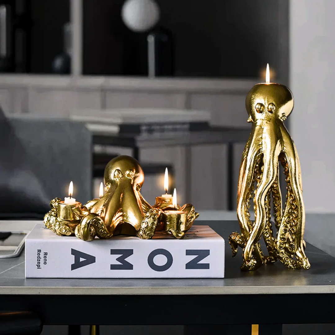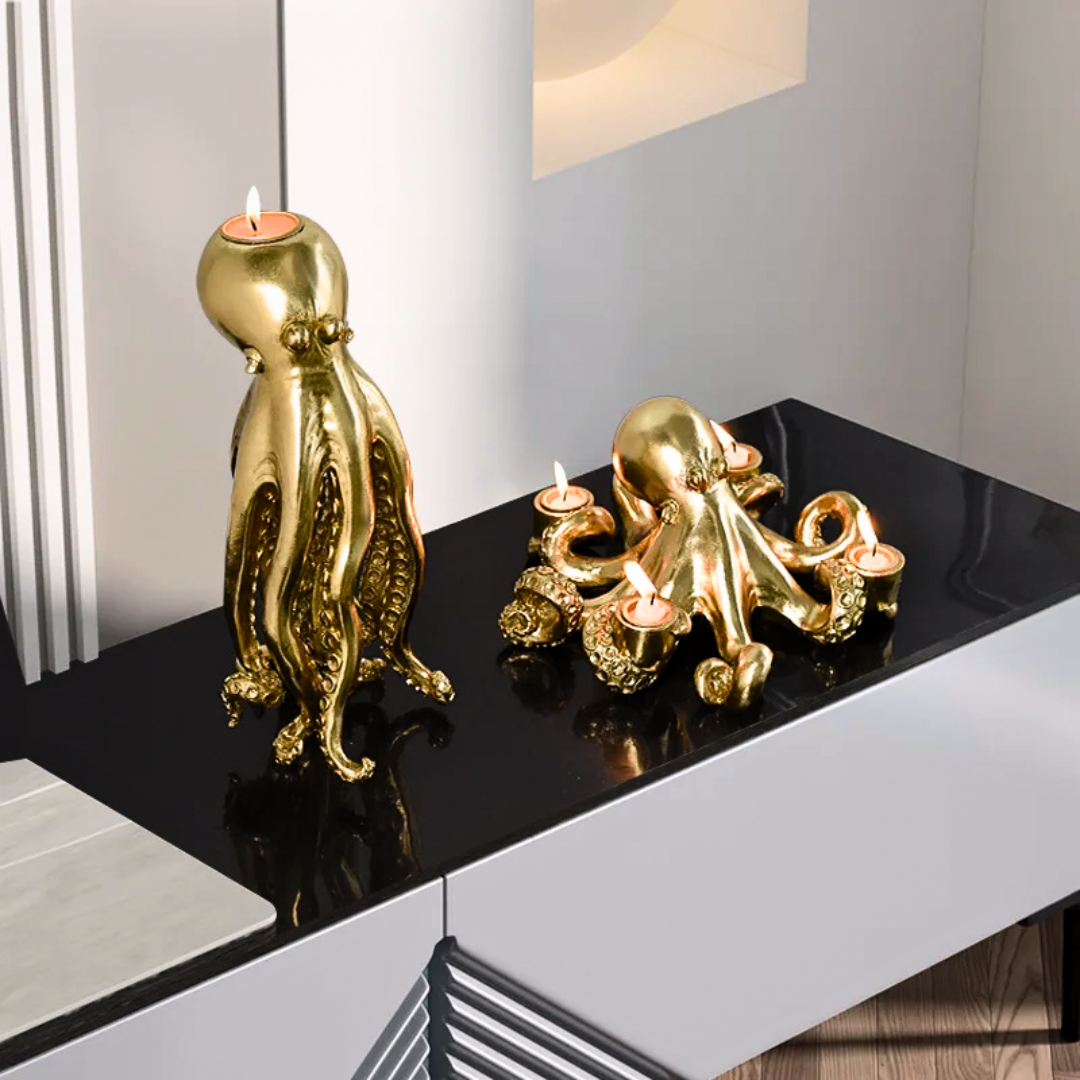 Each piece is a work of art, featuring a sculpted octopus with intricate tentacles that gracefully hold your favorite tealight or votive candles. Whether adorning your coffee table, mantelpiece, or bedside table, this captivating creature will spark conversation and add a unique touch to your decor.