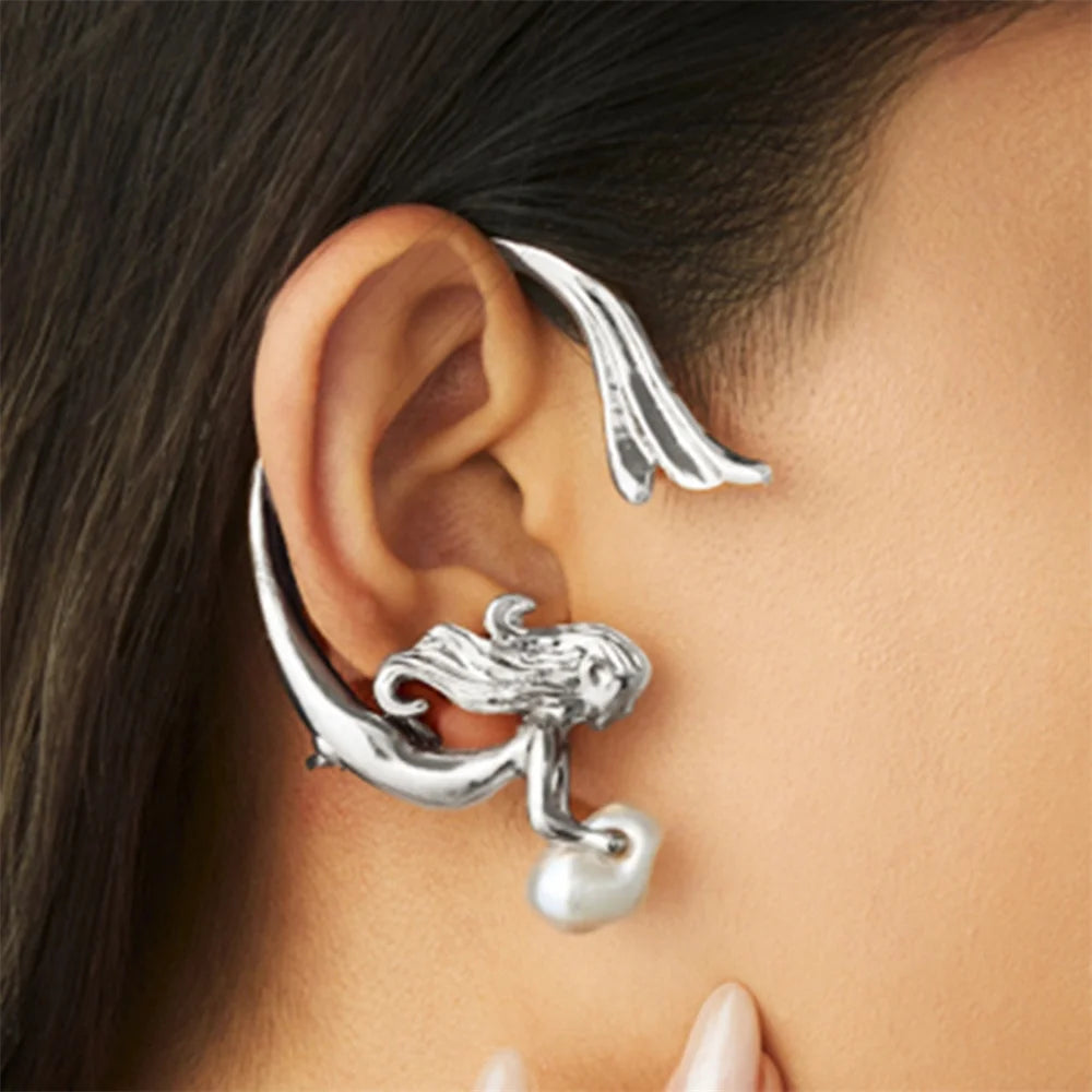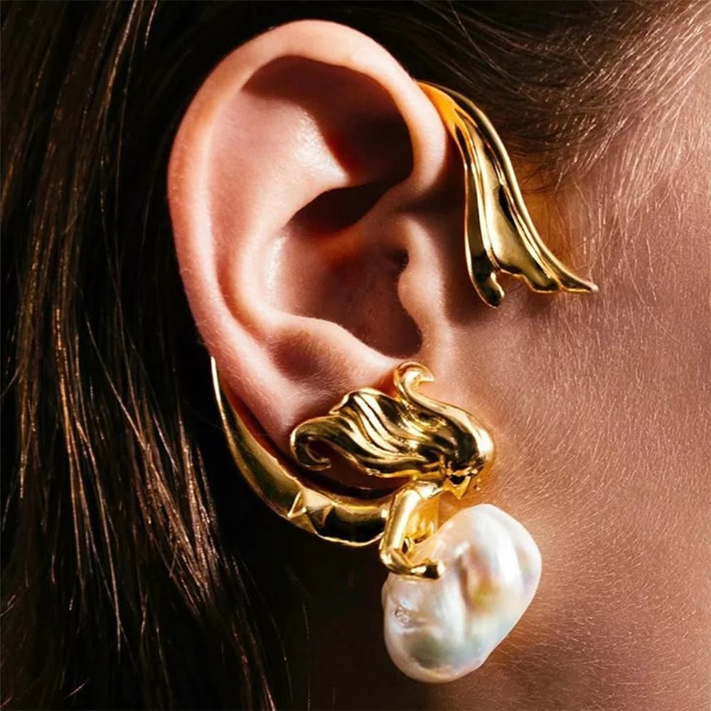 A single statement ear hook that swirls along the helix like a breaking wave. The Siren Curl slips on without piercings, hugging the ear with a smooth, adjustable fit and finishing in a luminous pearl drop. Equal parts fantasy and finesse—instantly turns a simple tee or evening dress into a look.