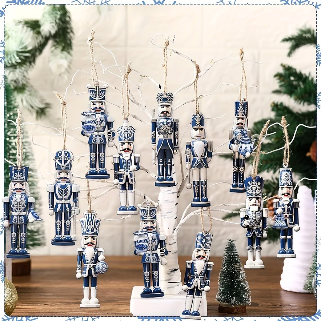 The Nutcracker Brigade is here to bring a touch of magic to your Christmas tree. This set of 12 wooden nutcracker ornaments is crafted with intricate detail and a festive spirit, featuring a charming array of soldiers in their finest uniforms.