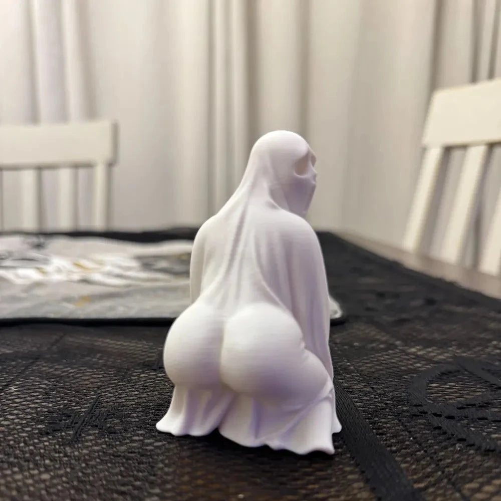 Oddity Parlour turns Halloween wit into a collectible desk piece. 3D‑printed in smooth, bone‑white polymer, the sculpted sheet‑ghost drapes over exaggerated curves for a playful, modern silhouette. Lightweight yet sturdy, it sits neatly on shelves, consoles or worktops—an instant conversation starter.