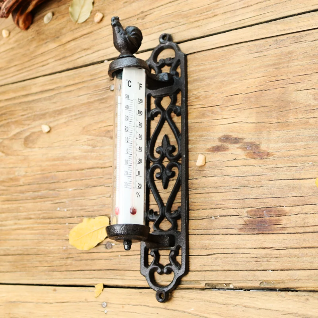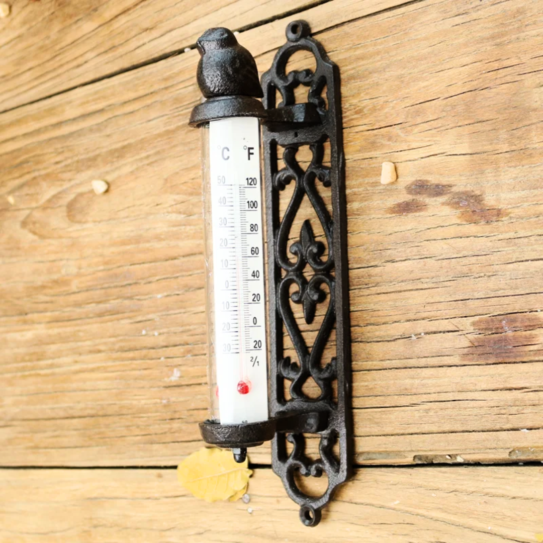 Its intricate metalwork and classic design will elevate any space, indoors or out. Not only is it beautiful, but it's also practical, keeping you informed of the temperature with its easy-to-read scale.
