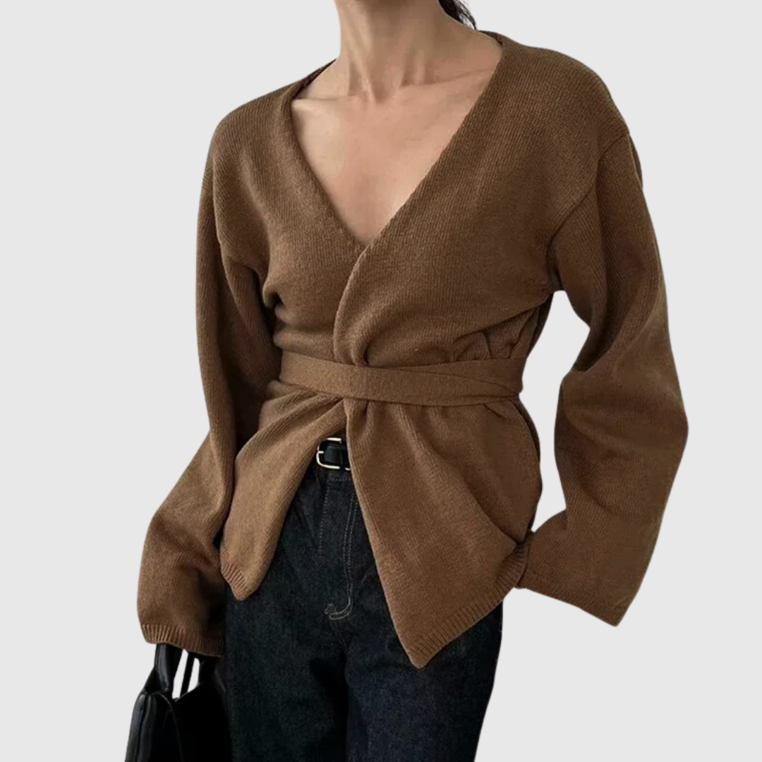 This versatile piece flatters every figure with its deep V-neckline and wrap-around design that cinches at the waist. The long sleeves add a touch of sophistication, making it perfect for both work and play. Available in a range of neutral shades, this top is a must-have for your wardrobe.