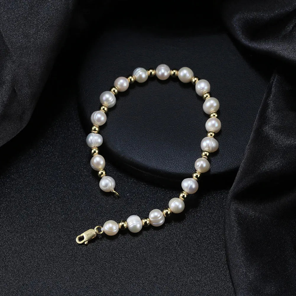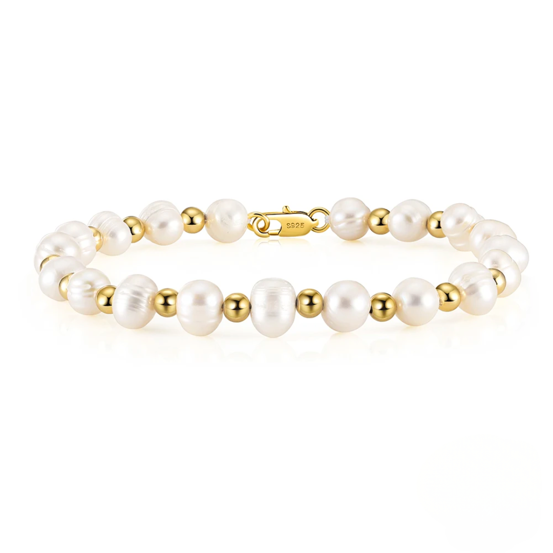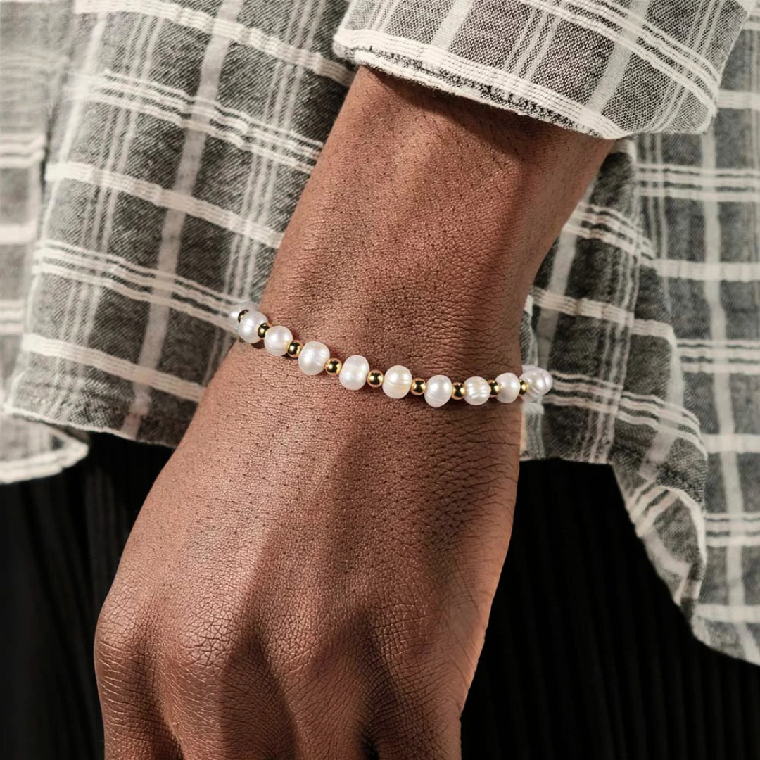 This exquisite bracelet marries the classic allure of natural pearls with contemporary design, creating a versatile piece that transcends gender and occasion. Each pearl is carefully selected for its radiance, complemented by our signature 18K gold-plated sterling silver clasps.