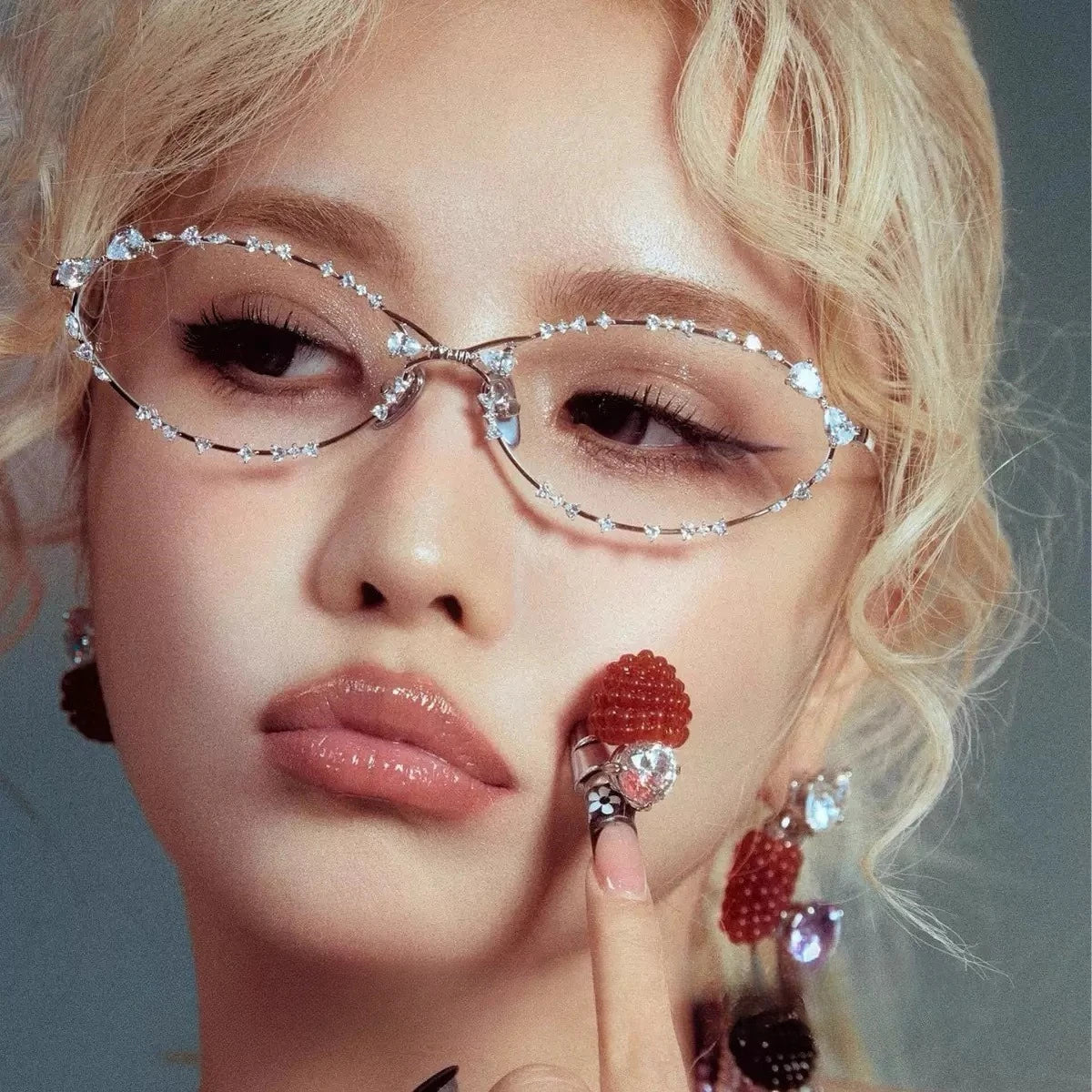 A slim oval silhouette finished with subtle rhinestone accents along the frame. Designed with lightweight alloy construction and UV400 lenses for everyday sun protection.