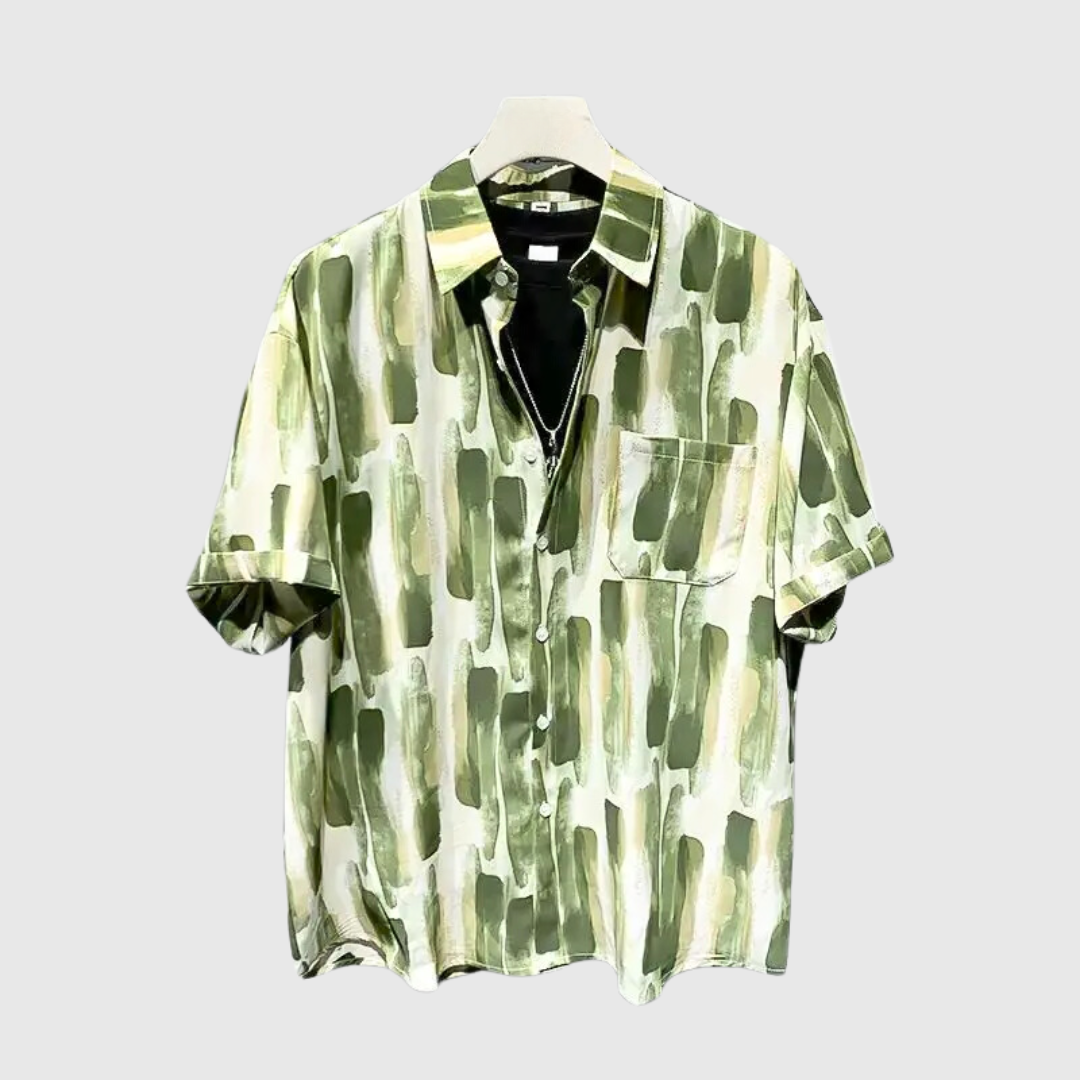 Ditch the boring basics and unleash your inner artist with The Painted Button-Down. Our short-sleeved shirts are your canvas, splashed with vibrant brushstrokes and ready for adventure.
