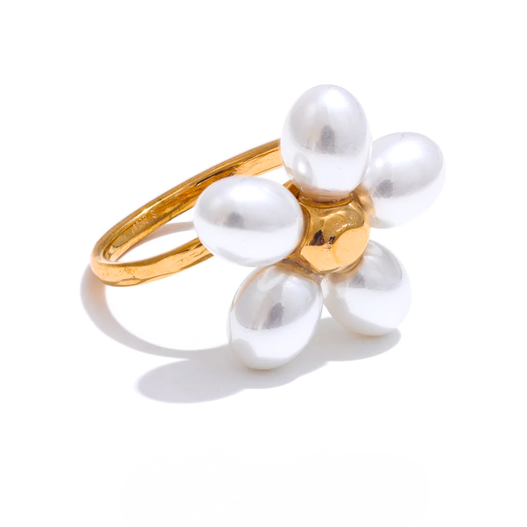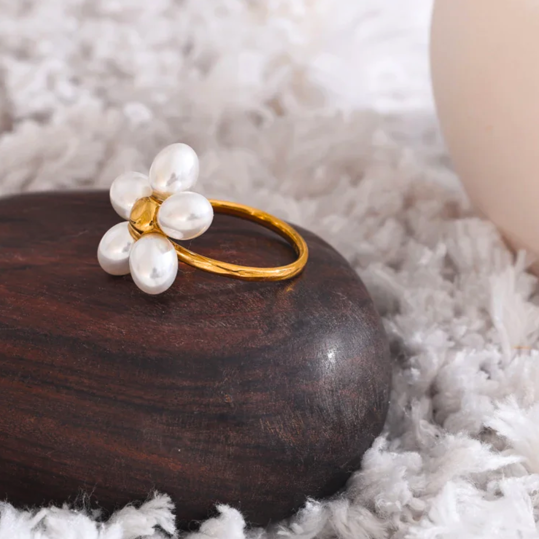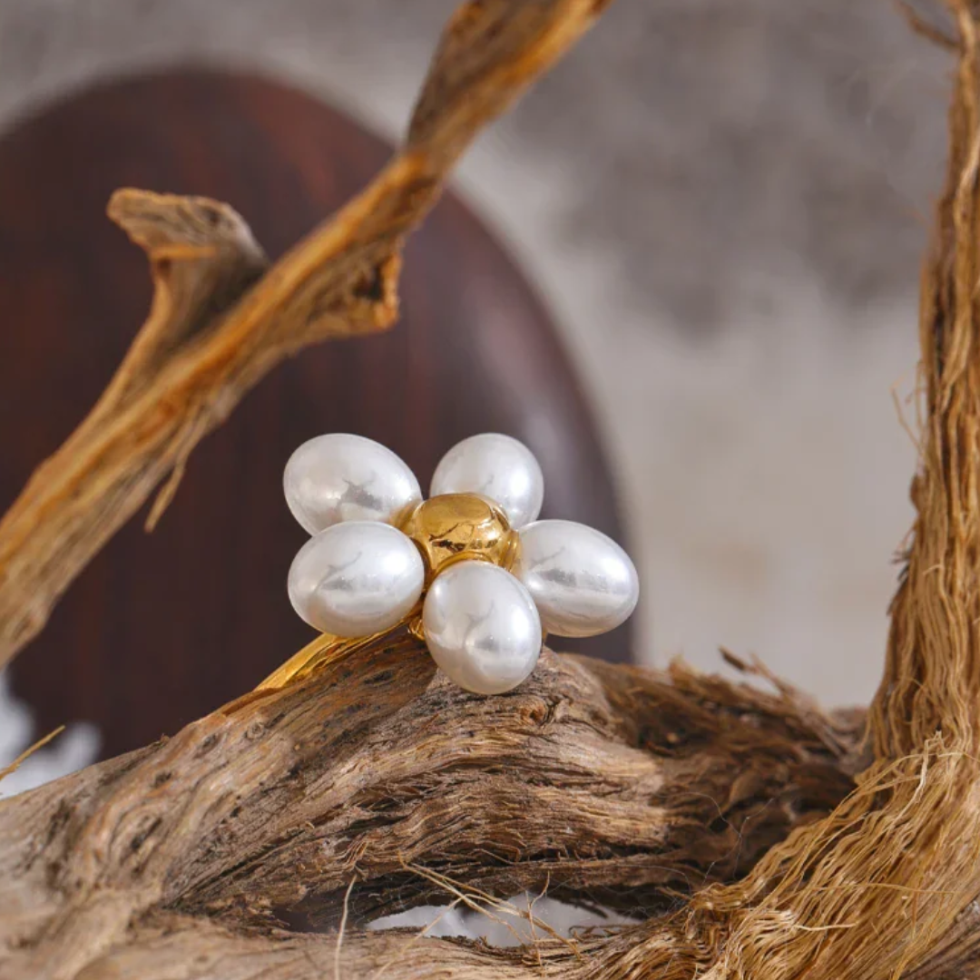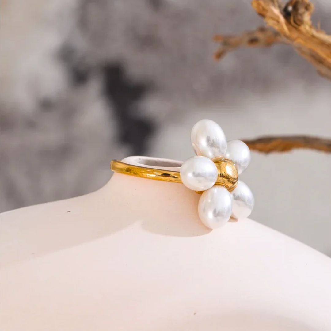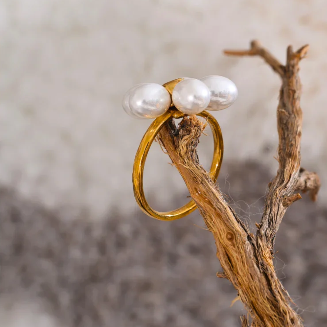 Our signature gold ring features a mesmerizing array of pearl-like orbs, clustered like dewdrops on a golden petal. This isn't just jewelry – it's wearable sculpture that captures the organic beauty of a blooming flower, frozen in precious metal.