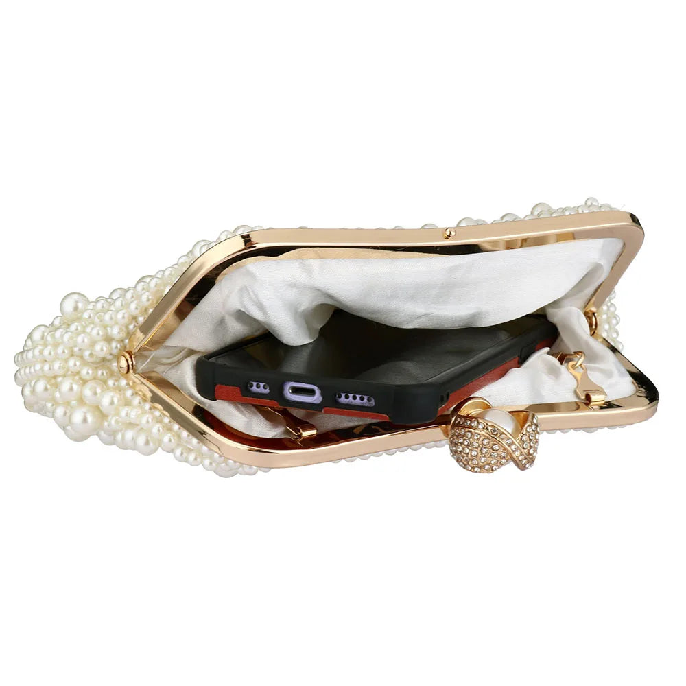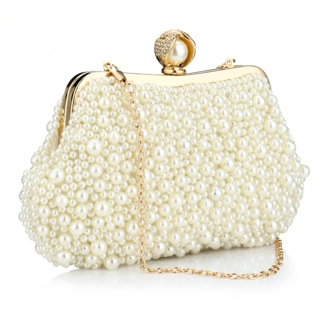 This exquisite purse features a luxurious pearl-embellished exterior, complemented by a sleek golden clasp that adds a touch of glamour. Designed for the discerning individual who appreciates both style and functionality, this clutch easily transitions from a handheld evening bag to a chic shoulder accessory with its detachable chain strap.