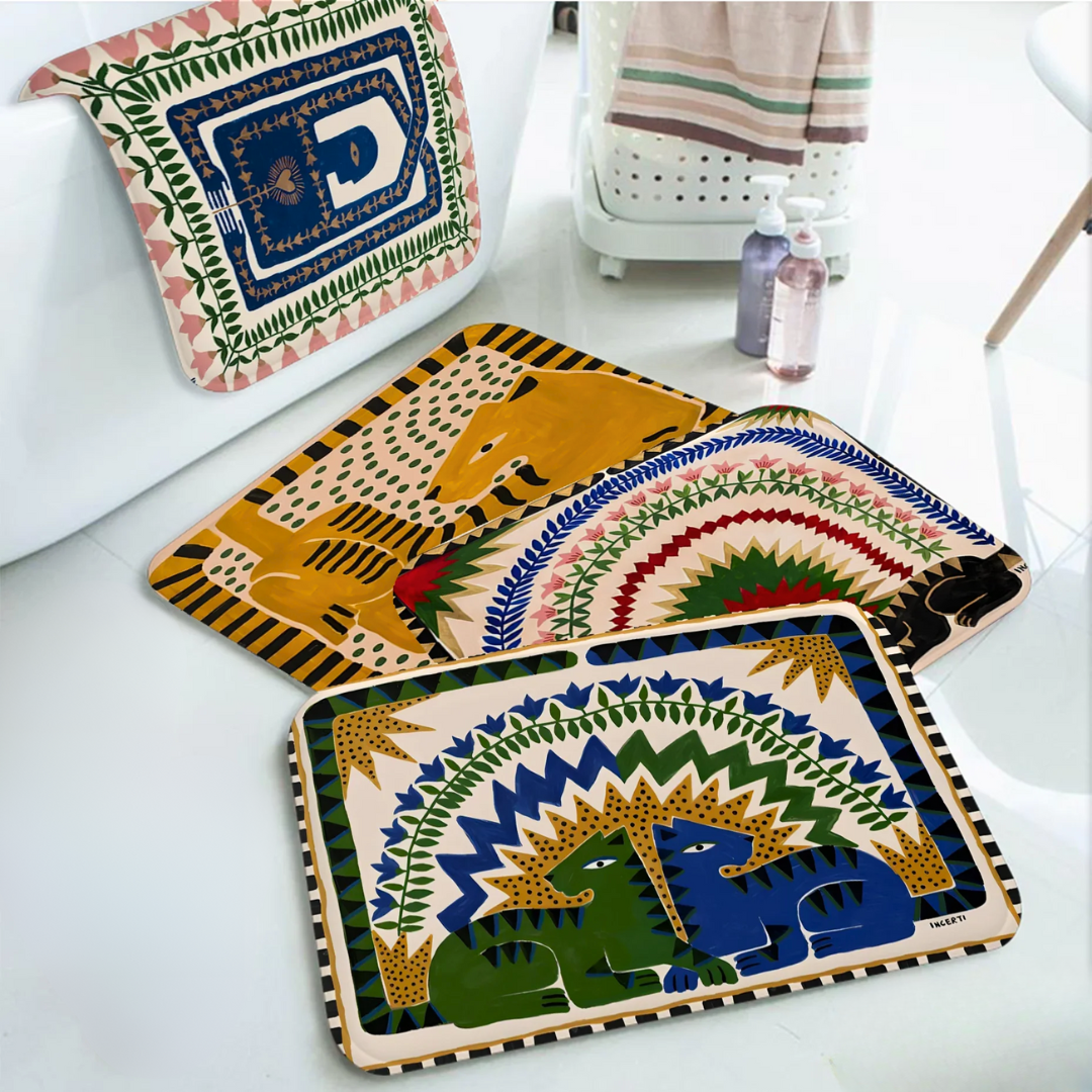Ditch those boring bath mats and roll out the red carpet (or should we say papyrus?) for Pharaoh's Footprints! These aren't just floor mats; they're portals to another world. Think bold colors, fierce felines, and hieroglyphics that'll have your guests saying, "Did you just rob a museum?!"