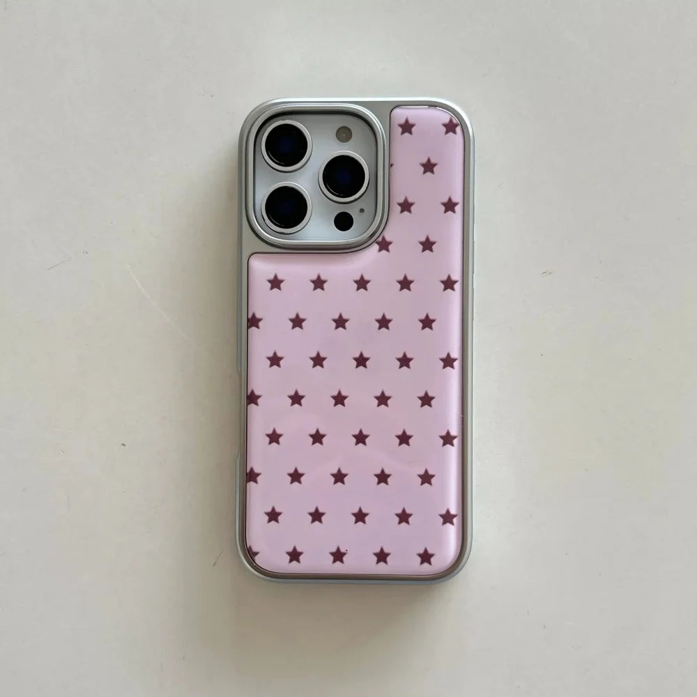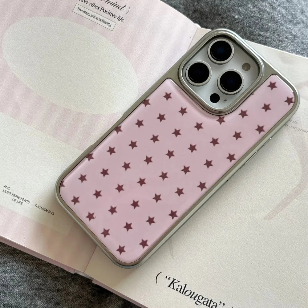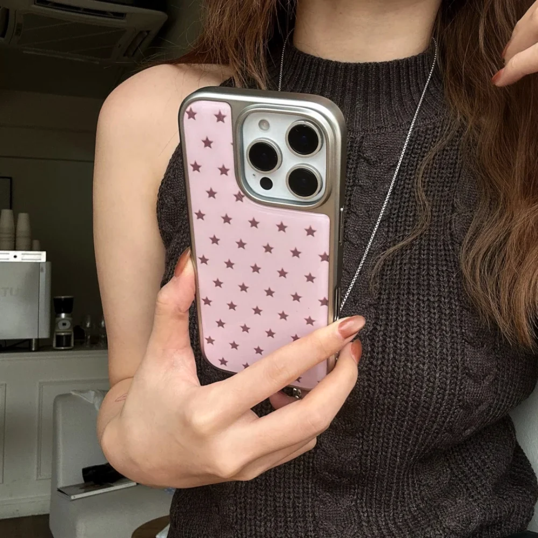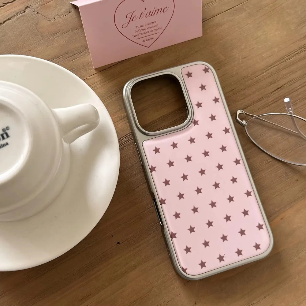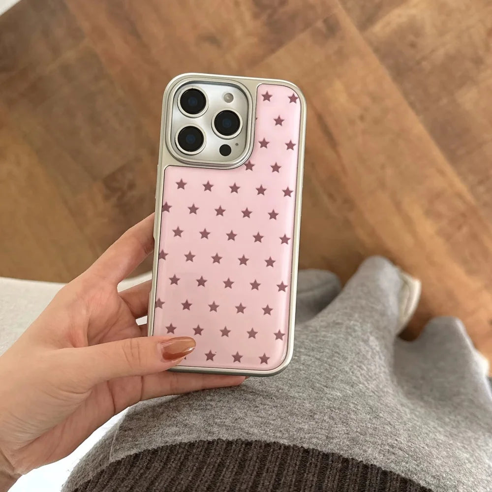 A soft pink protective phone case decorated with small raised star studs. Lightweight, grippy, and stylish—perfect for adding a cute Korean INS touch to daily outfits while keeping your phone safe.
