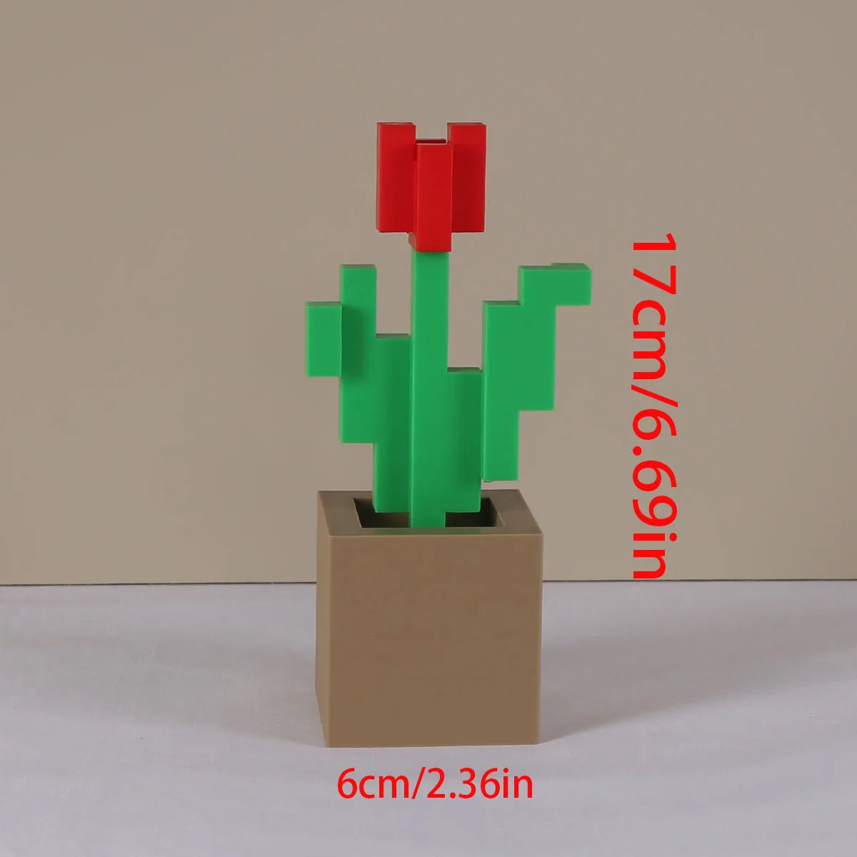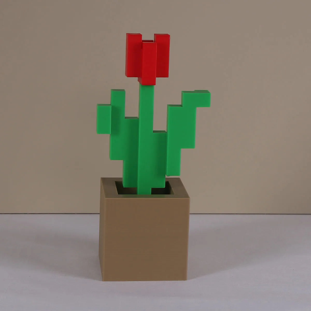 Add a dash of retro charm with a 3D-printed rose straight out of an 8-bit fantasy. Made from sturdy plastic, it requires zero upkeep—just set it on a desk or shelf for a playful pop of color. Perfect for gamers, minimalists, or anyone seeking a low-key conversation starter.