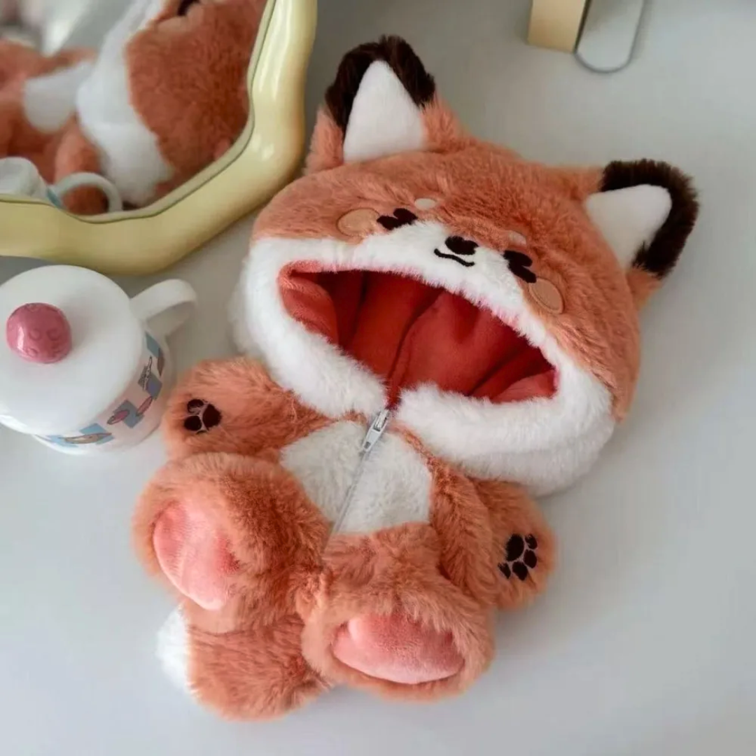 A soft animal-style onesie designed to dress 20 cm dolls. Decorative costume accessory intended for play or display.