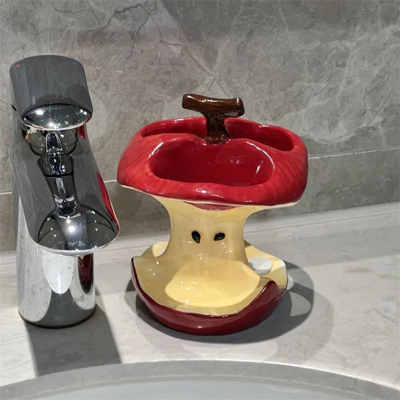 A playful sculpture for your sink: Pomella transforms an everyday counter into a curated vignette with its glossy “apple core” form and three precision‑molded wells. Designed to cradle two electric brush heads and a toothpaste tube, it keeps essentials upright, dry, and impeccably organized.