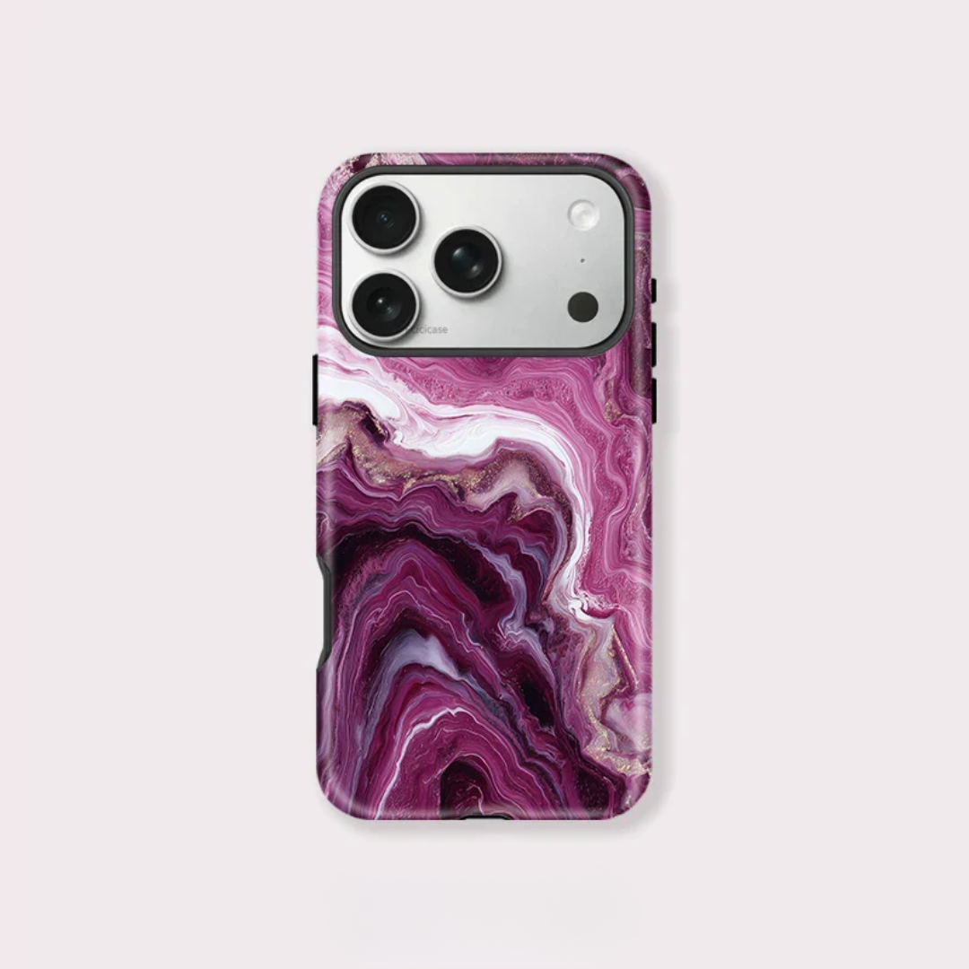 A purple marble print flows across the back like ink in water, turning your phone into a small art piece. The built‑in magnetic ring works with MagSafe chargers and grips, so you get both style and everyday function.