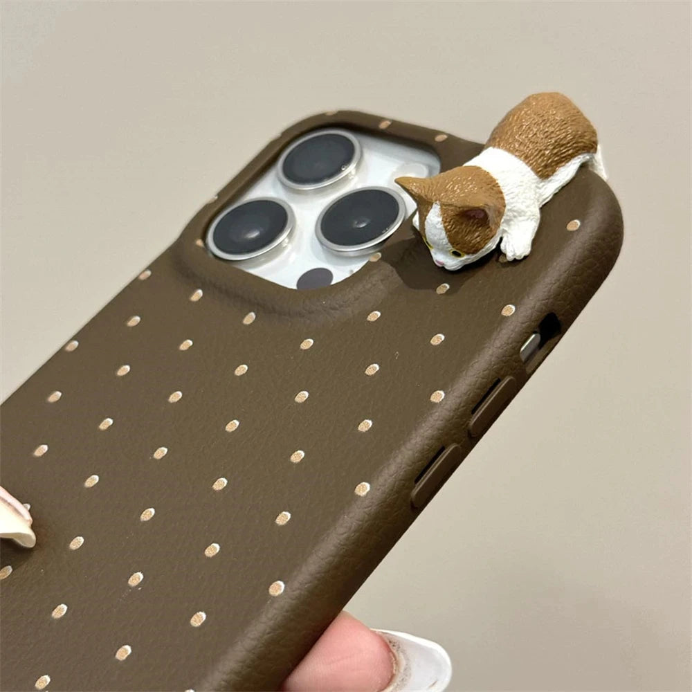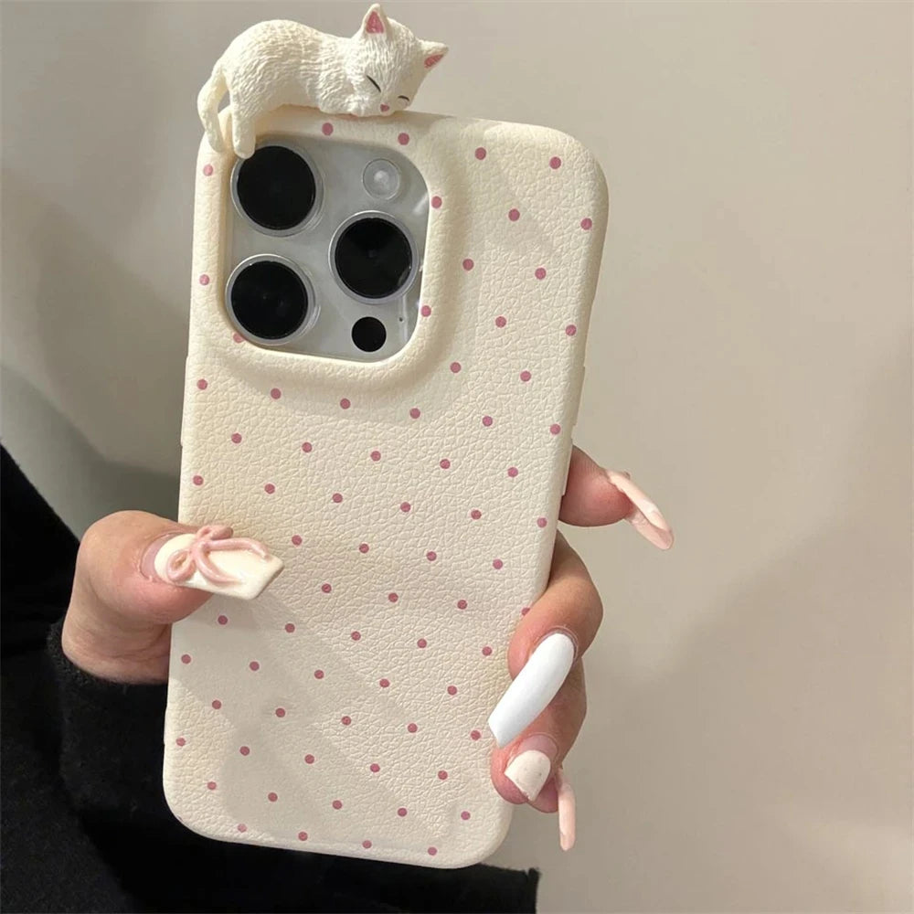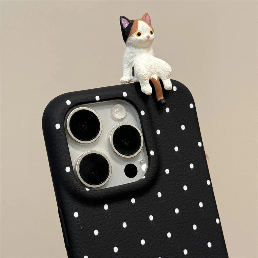 This adorable case features a playful cat figurine perched on top, adding a touch of personality and charm to your everyday tech. With its cute design, including playful polka dots and a variety of colors, this case is perfect for cat lovers and anyone who appreciates a touch of whimsy.