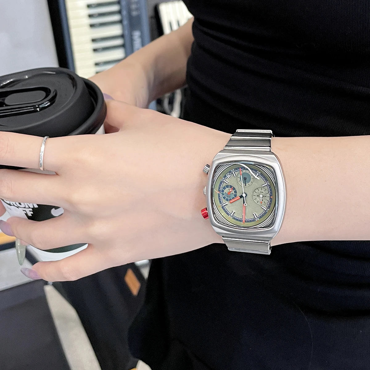 This exquisite watch redefines modern elegance with its unique square face and sleek metallic band. Crafted with precision and passion, it's the perfect accessory for the woman who appreciates timeless style with a contemporary twist.