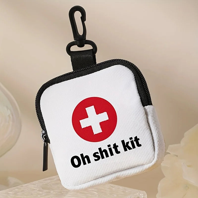 A compact canvas pouch with a bold red cross keeps all your tiny lifesavers—hair ties, pills, wipes, lip balm—organized in one spot. The zipper opens wide for easy access, while the top clip hooks onto bags, keys, or belt loops for on-the-go emergencies.