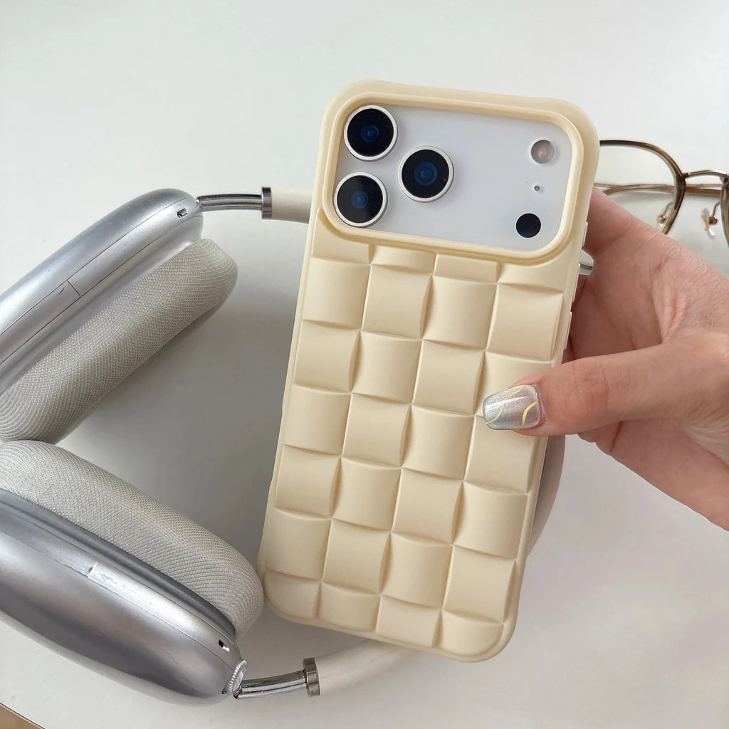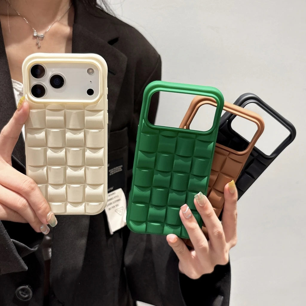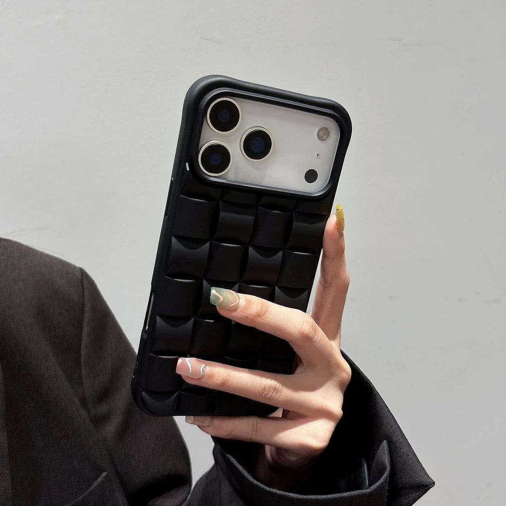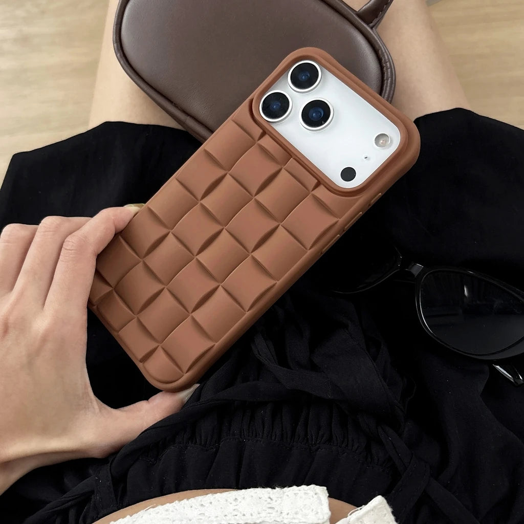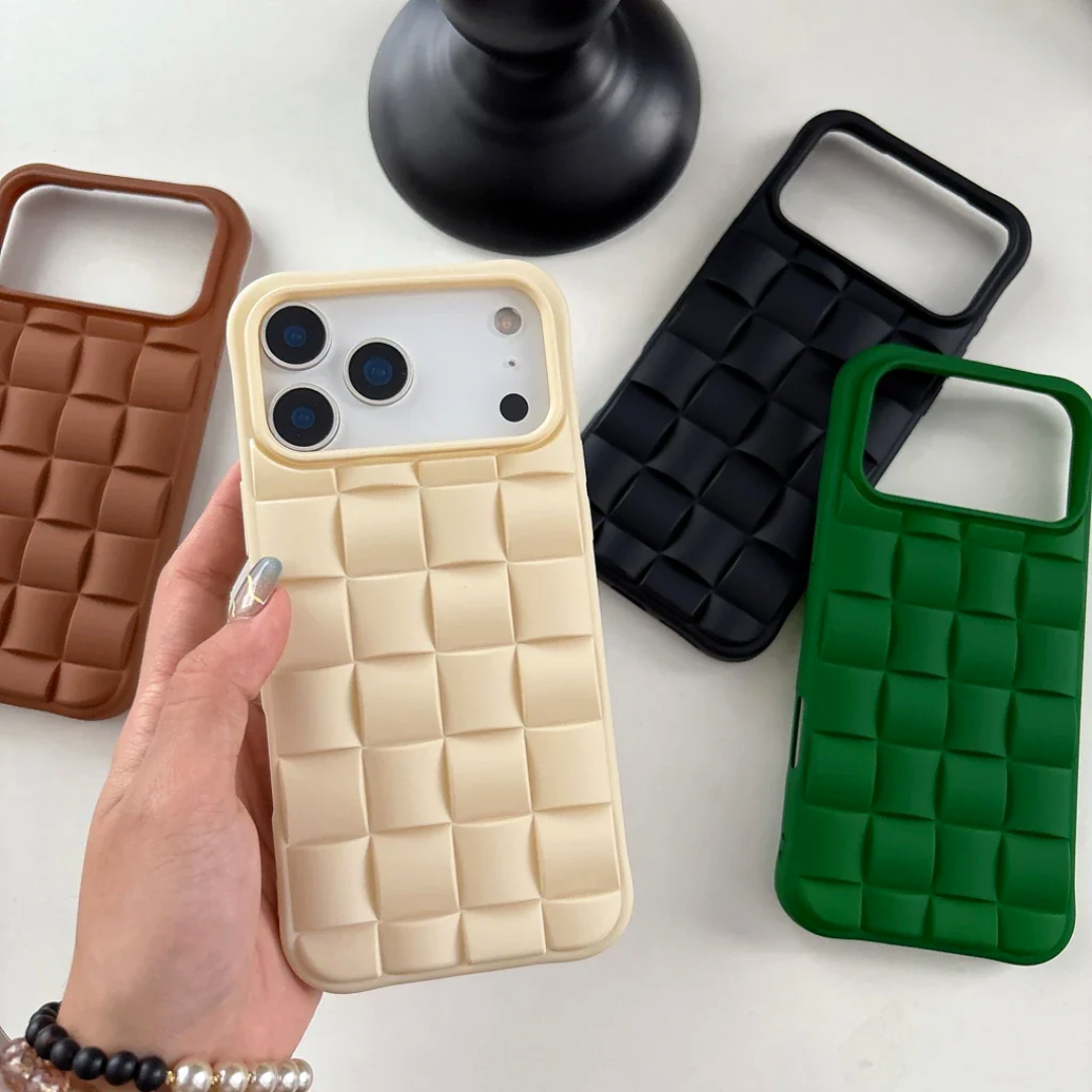 Pillow‑soft, 3D weaving blocks feel like a mini cushion in your hand while a tough inner shell takes the hit when it falls. The matte finish resists fingerprints and slides easily into pockets.