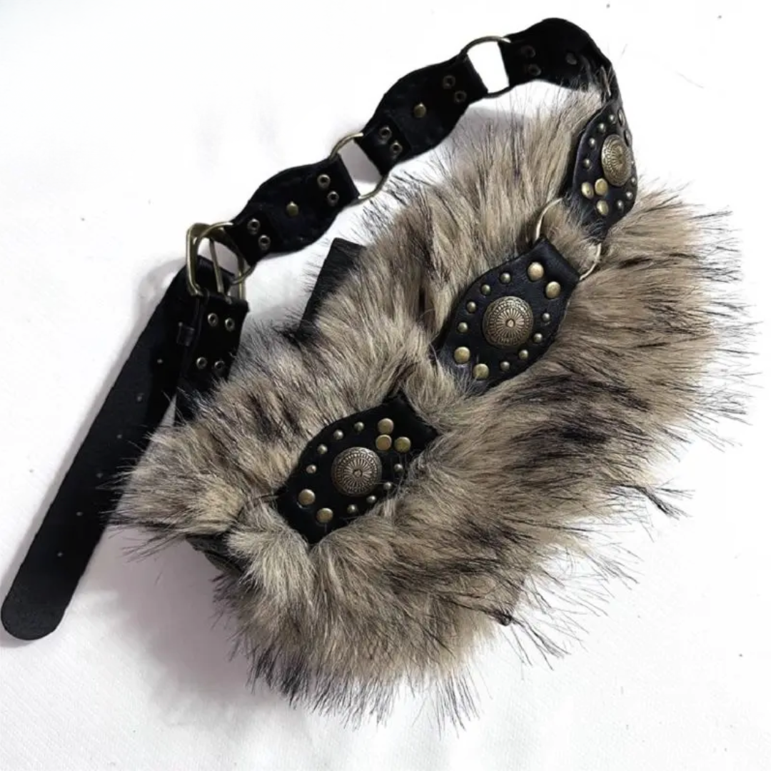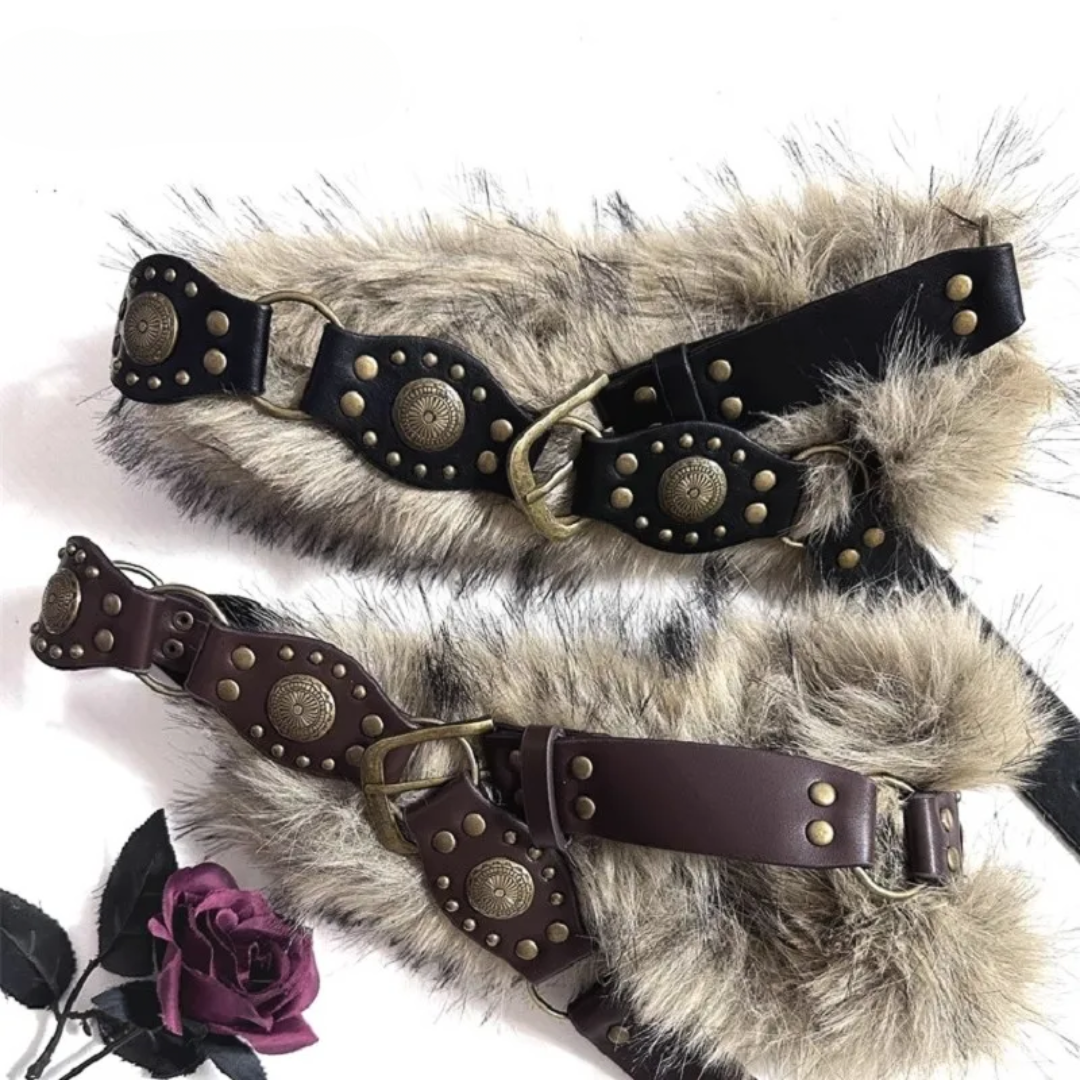 Ravencourt elevates punk hardware with sculptural detail. Cut from smooth faux leather, this statement belt is set with concave medallion plaques linked along the front and trimmed with antiqued studs. An adjustable buckle lets you wear it at the waist or low on the hips—sharp over minis, slip dresses or cargos.