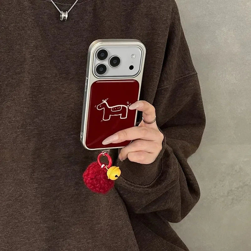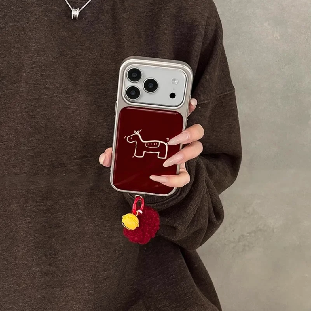 A bold red base paired with a pony graphic and glossy electroplated finish for sharp contrast and attitude. Clean, graphic, and built on a protective shell.