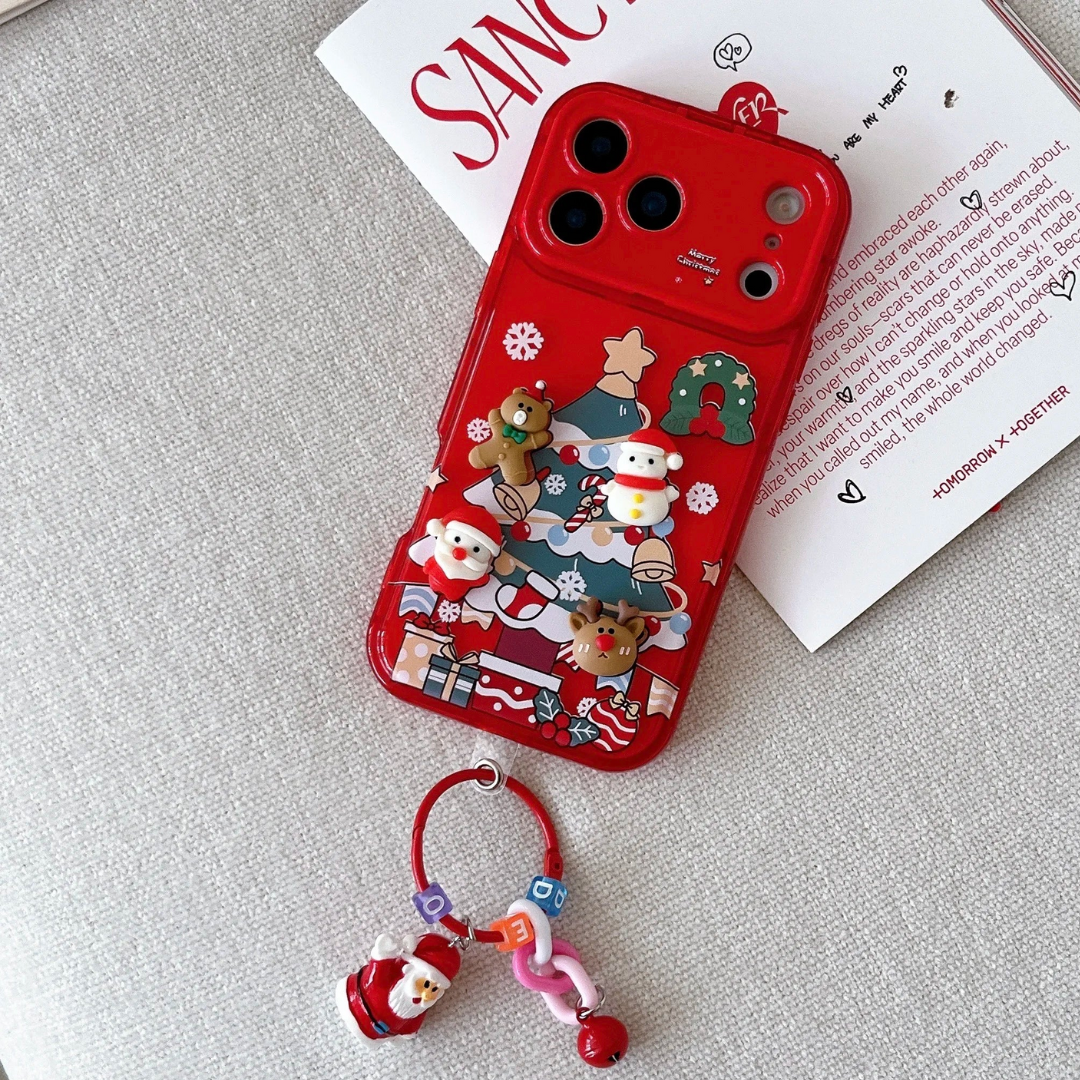 Holiday Stack piles tiny Christmas characters—snowmen, gingerbread, bears, trees—into a playful tower on bright Santa red, turning your phone into a handheld festive scene. A matching charm dangles from the side for extra movement, while the soft shell keeps the phone cushioned through December drops and photo marathons.