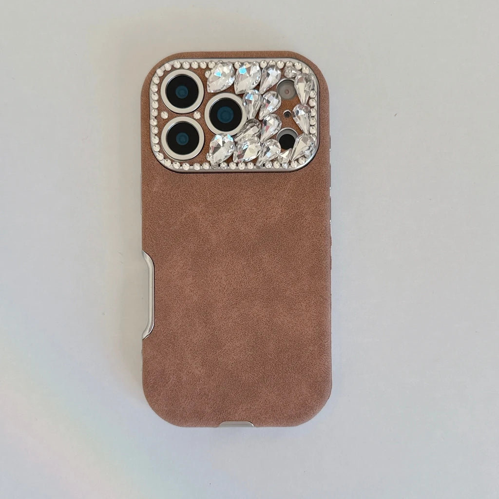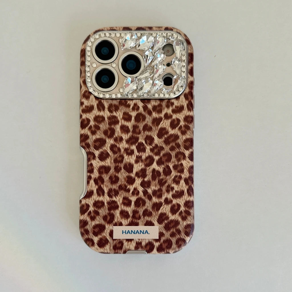 Rhinestone Leopard Suede iPhone Case