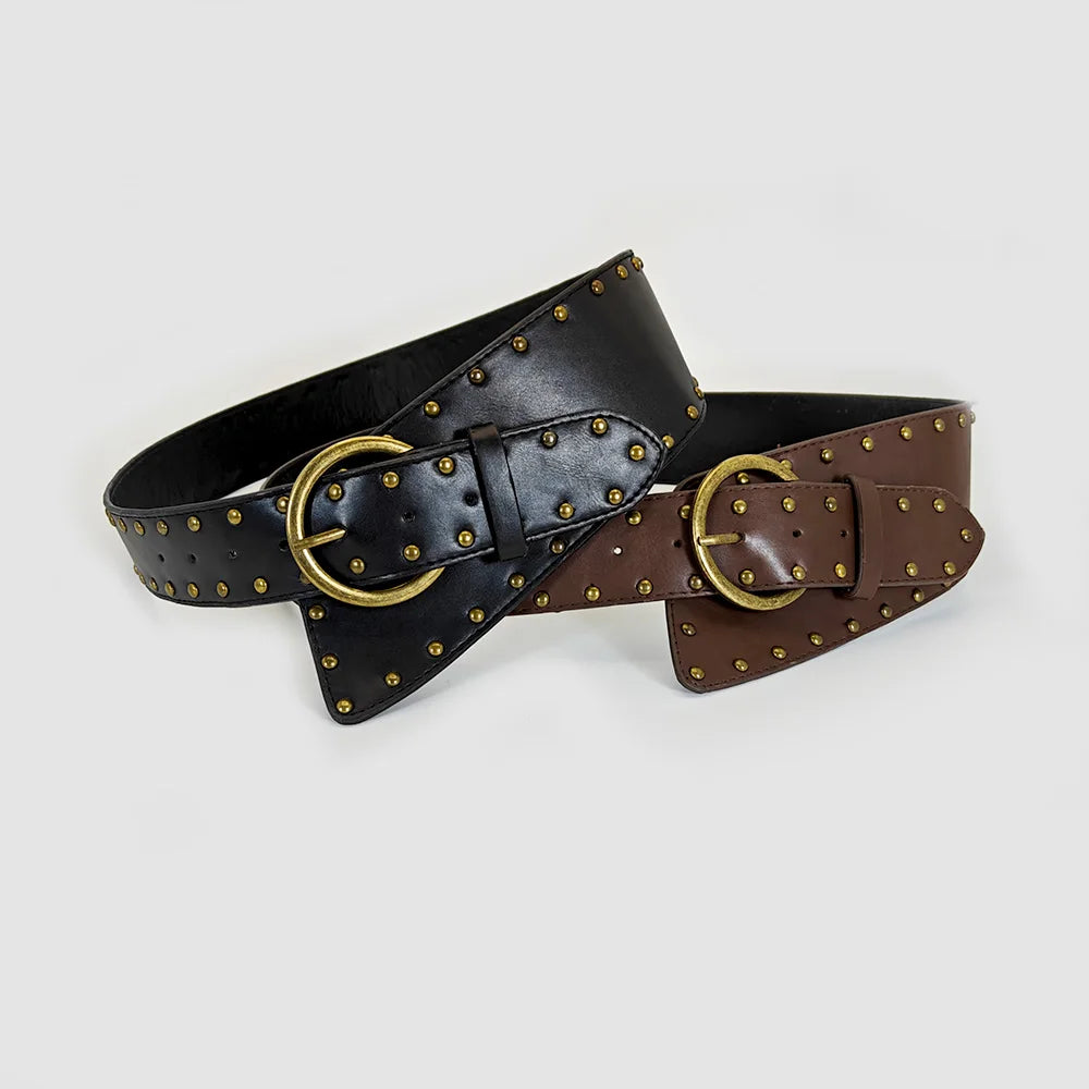 Steal the scene with a wide, rivet-studded belt that channels cowboy cool and gothic edge. Curves snugly at the waist for a knockout finish over dresses or denim.