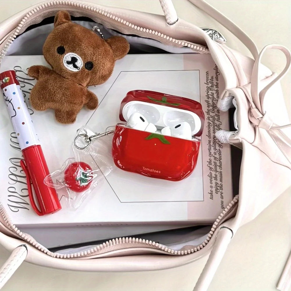 A farmers‑market twist for your earbuds. This glossy, semi‑transparent tomato shell snaps on in seconds, protects from scuffs, and clips to your bag with the matching charm so you never lose your case.