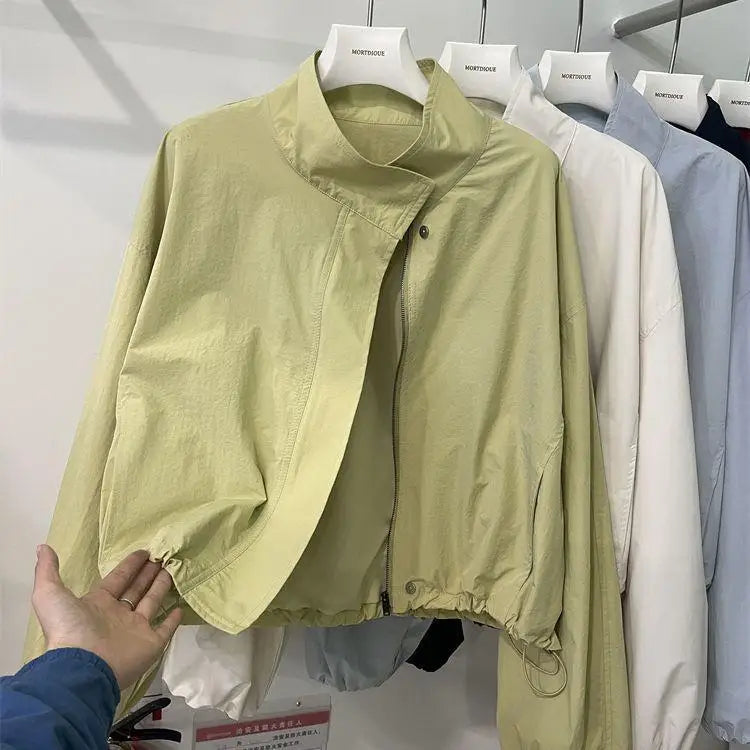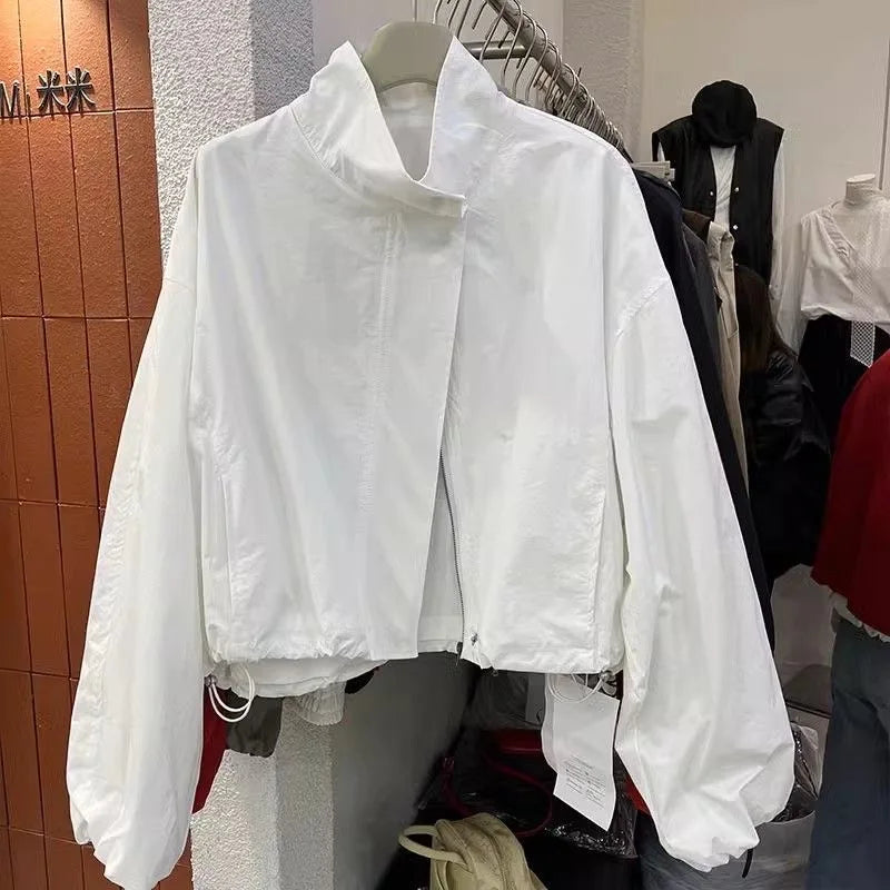 Rook elevates the everyday layer with a sculptural stand collar and clean, cropped proportions. Cut from lightweight woven fabric, it drapes with relaxed sleeves and gathered cuffs, finishing with a neat snap front—easy over tees or slip dresses between seasons.