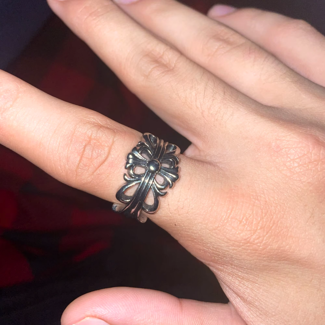 The Royal Rebel ring is a statement piece that blends vintage elegance with modern attitude. Its intricate design and adjustable sizing make it the perfect fit for any finger and any personality.