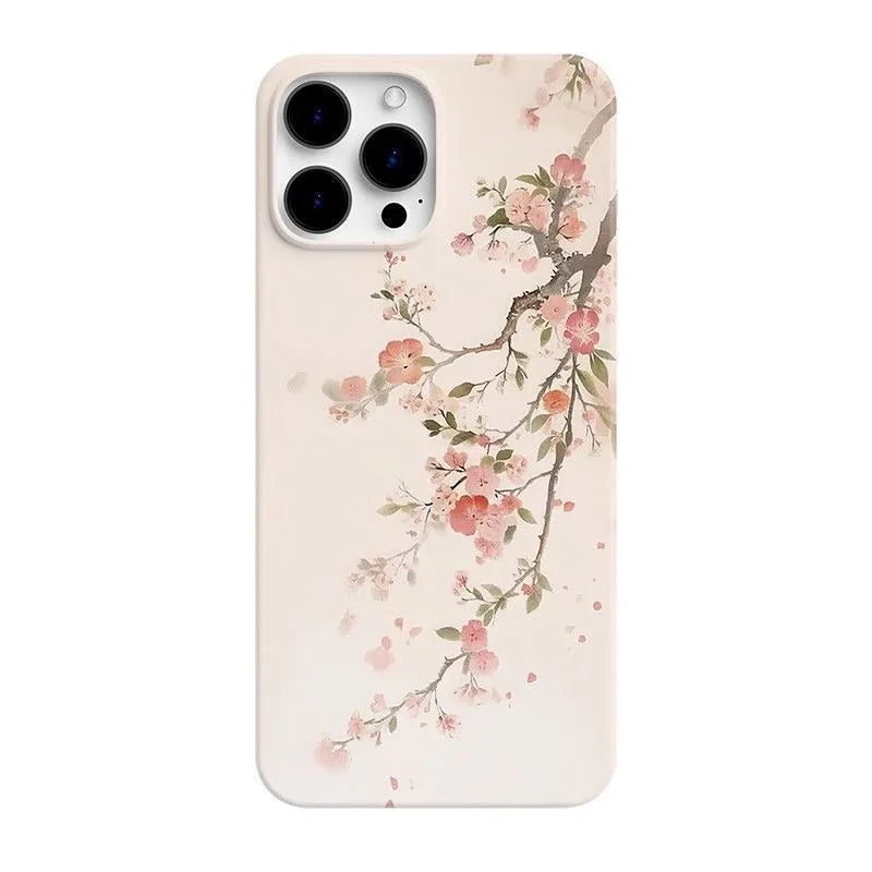 SABLE & BLOOM treats everyday tech as a small canvas for painterly motifs. This slim back cover features an ink‑style plum blossom illustration on a soft cream ground, wrapping cleanly around the edges to keep pockets sleek. Precision cutouts preserve full access to the camera and ports.