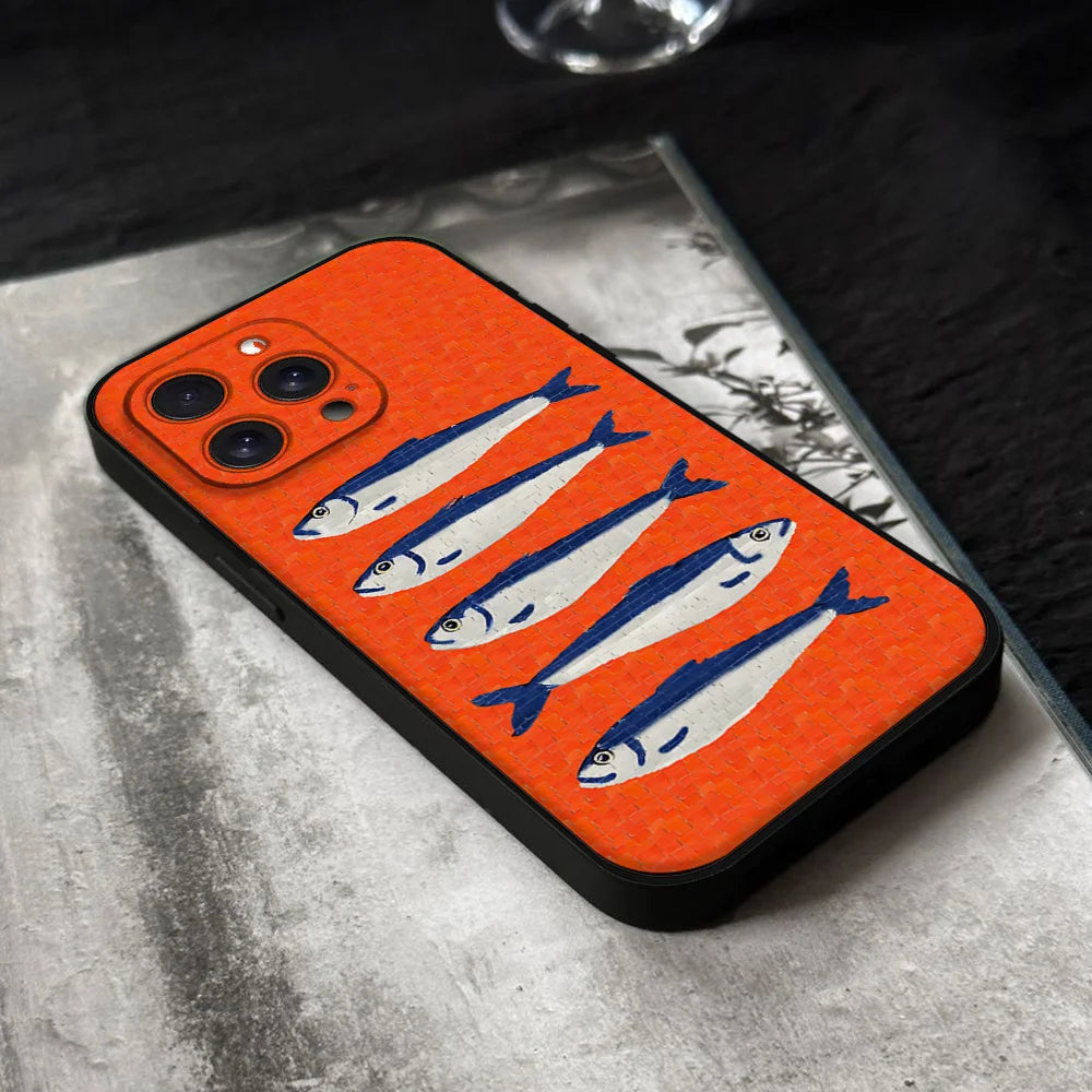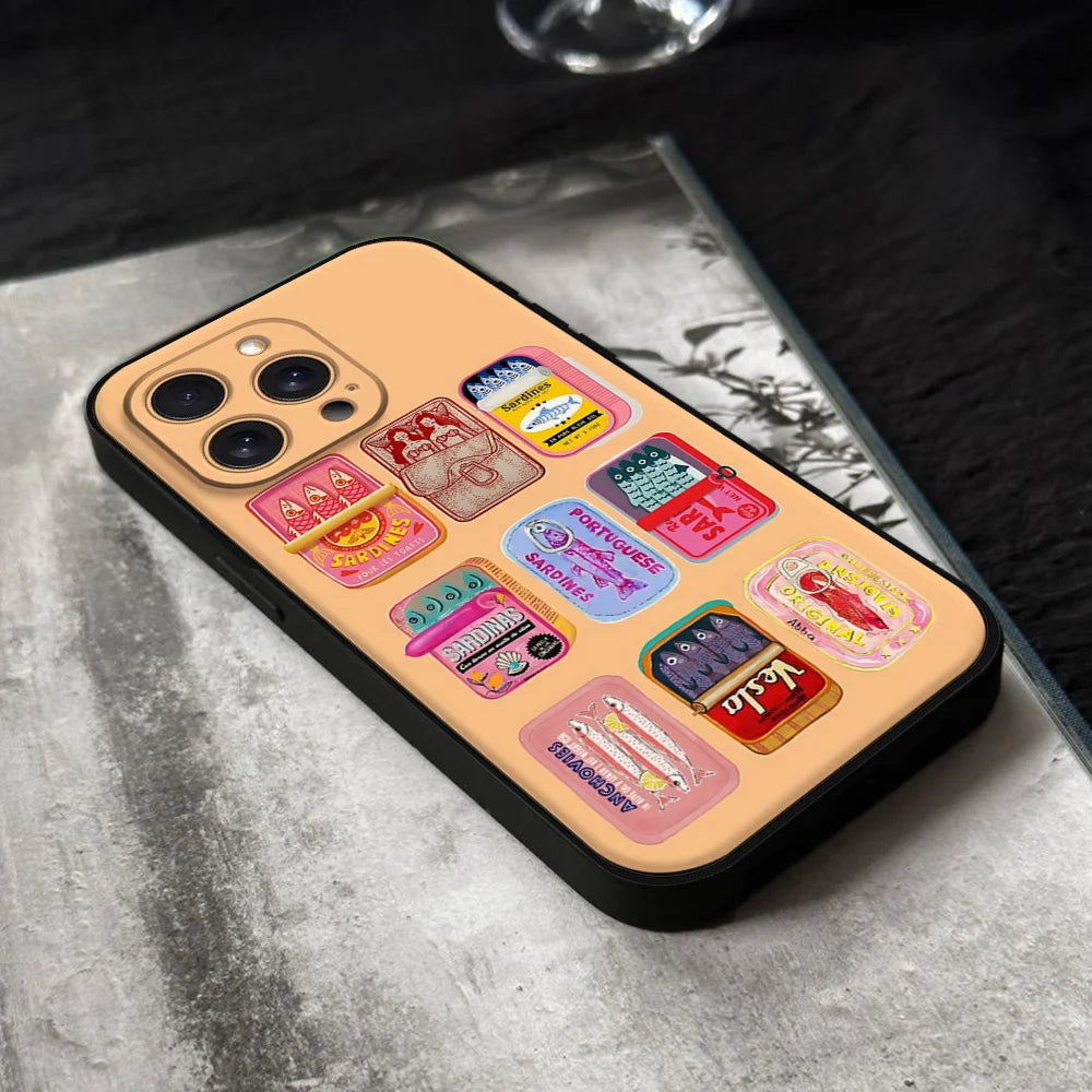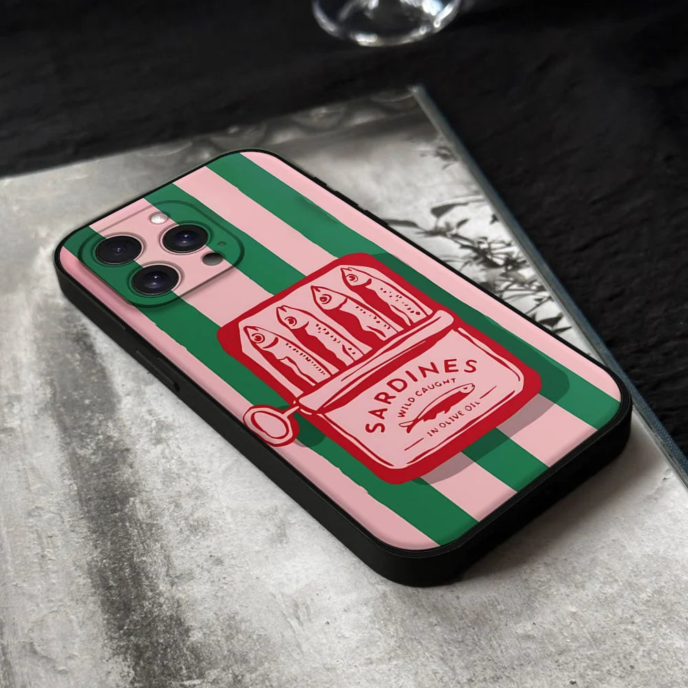 Vintage cannery art meets modern minimalism. A soft‑matte shell carries hand‑inked sardine illustrations and colour‑blocked label motifs, sealed beneath scratch‑proof resin that feels like ceramic tile. Feather‑slim but impact‑ready, the case guards lens and screen with raised bevels while hugging MagSafe chargers like a glove—turning your iPhone into a Riviera postcard that begs for a flat‑lay.