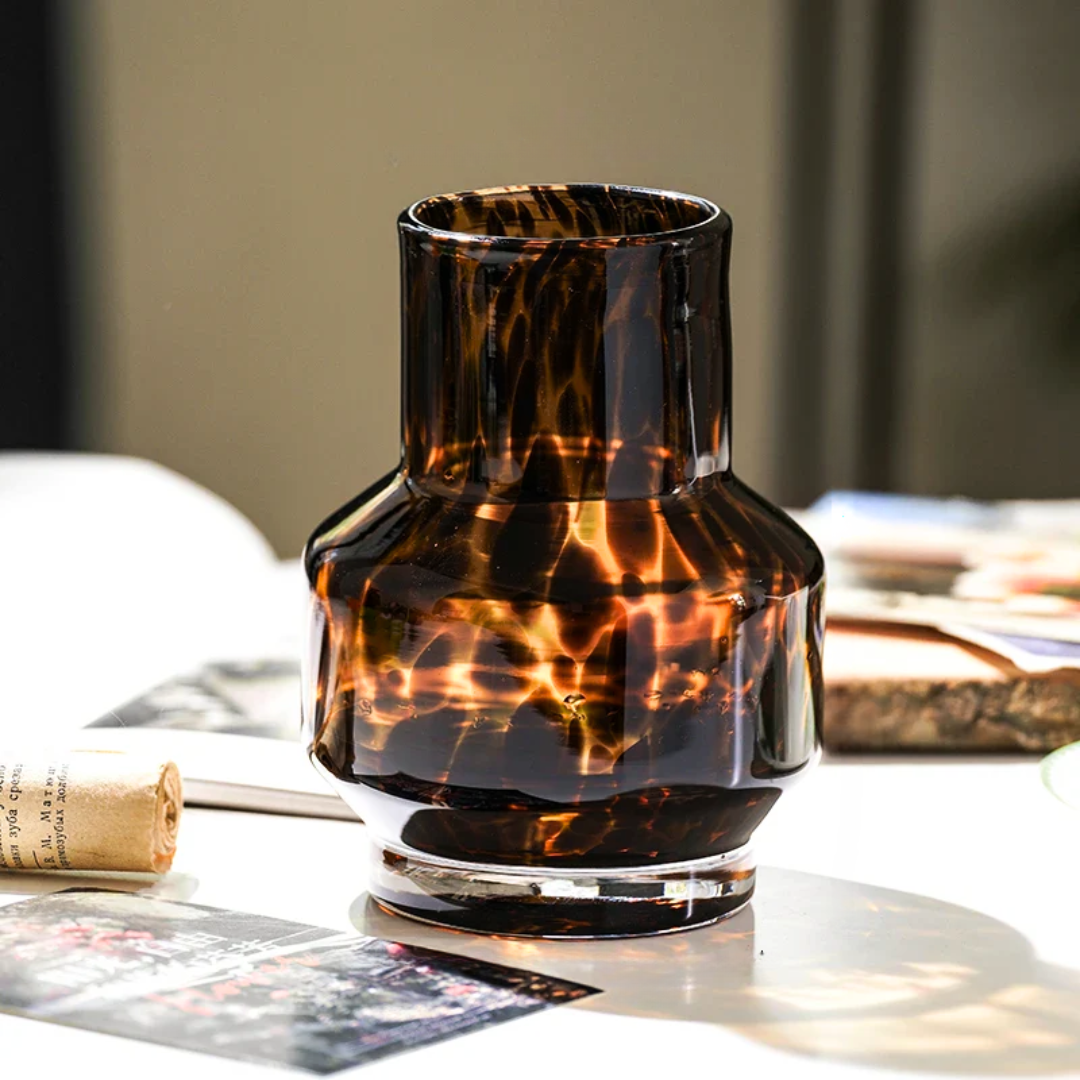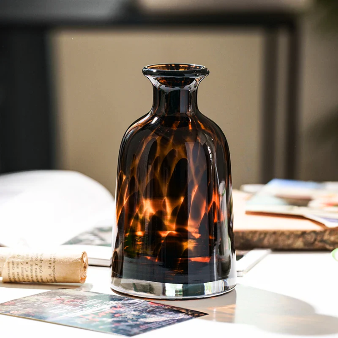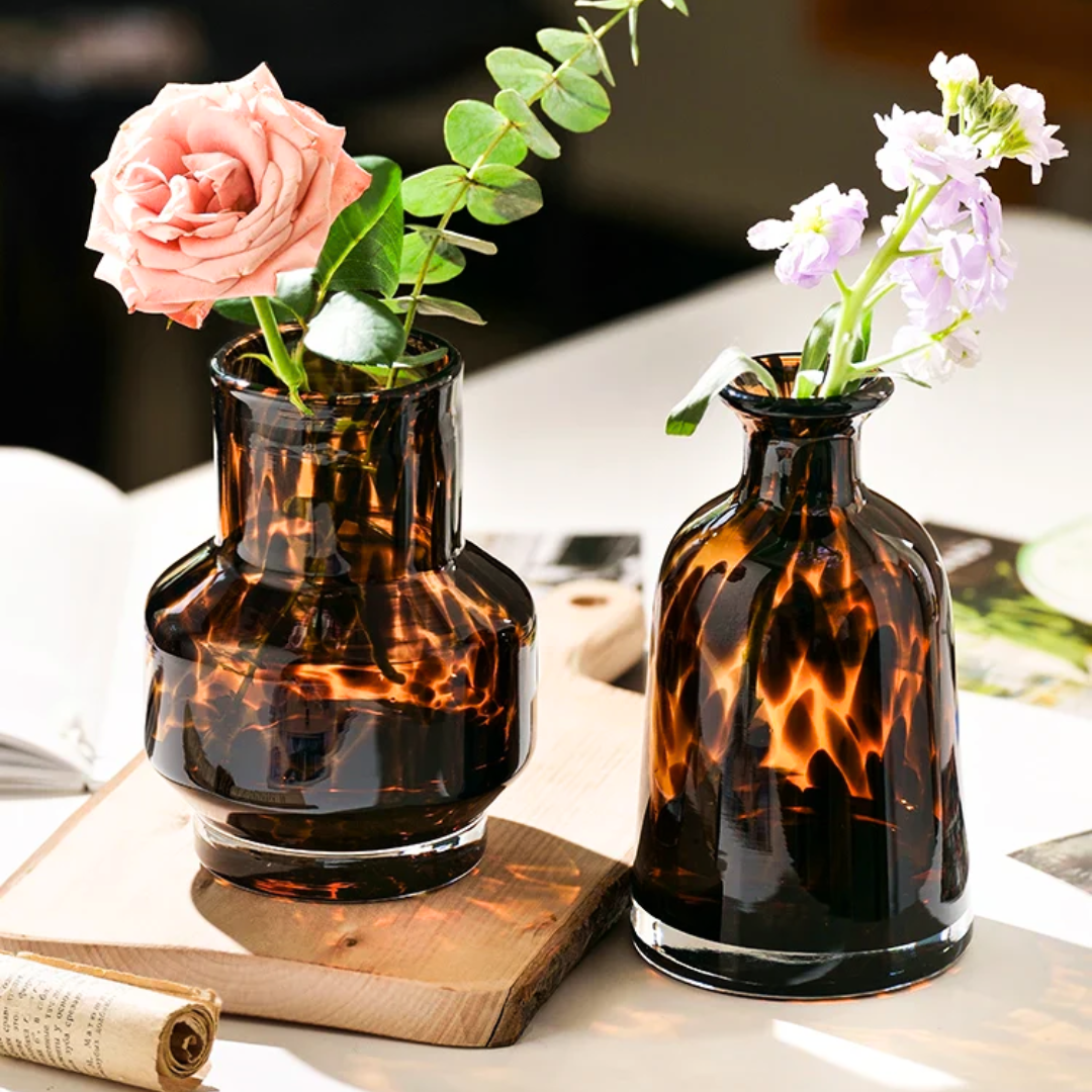 A swirl of amber leopard print, sleek glass catching the light... It's like your living room just stepped off a Parisian runway. This isn't just a vase; it's art you can actually use. Roses? Dahlias? Even a handful of wildflowers look couture in this baby. Seriously, your guests will be snapping pics for the 'gram.