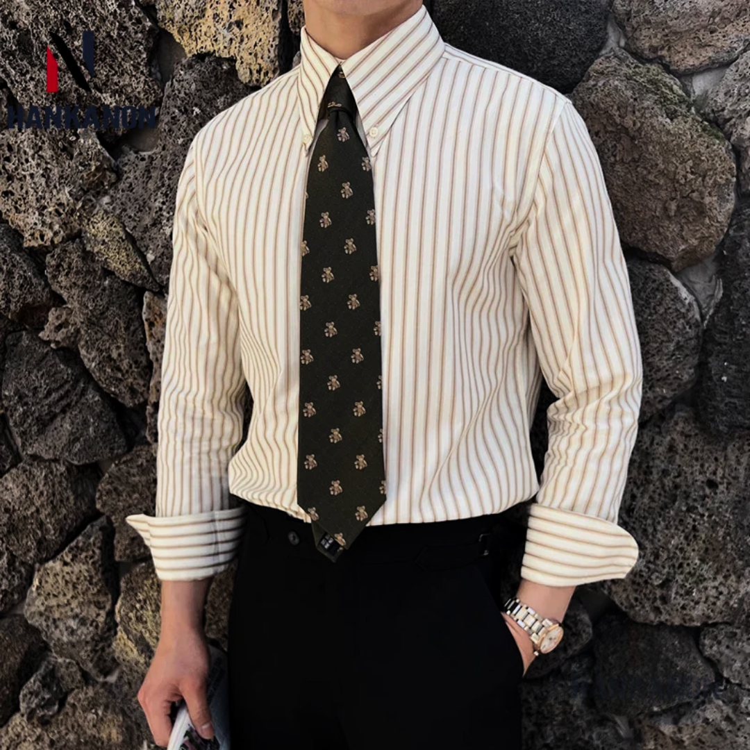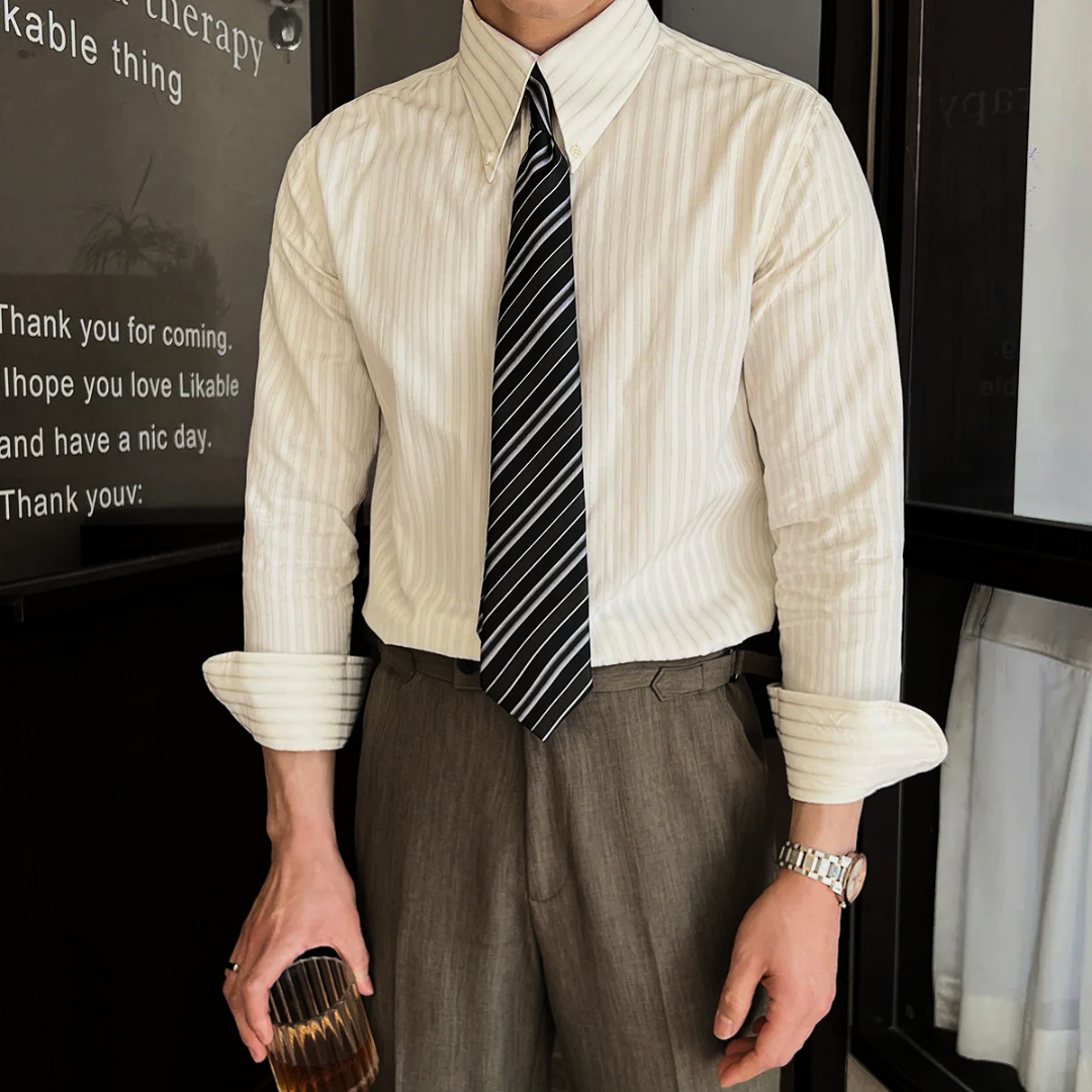 The shirt's impeccable tailoring ensures a flawless fit, while the classic button-down design, cuffed sleeves, and standard collar offer versatile styling options. Whether paired with a suit for the boardroom or dressed down with chinos for a relaxed evening, the Savoy Tailored Stripe elevates your confidence with its impeccable craftsmanship.