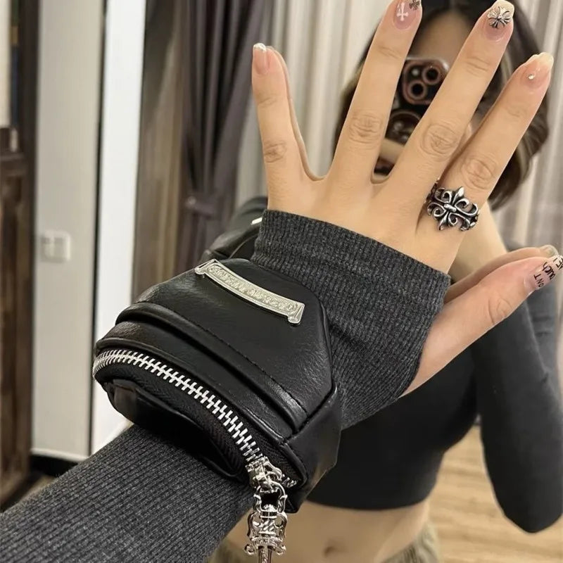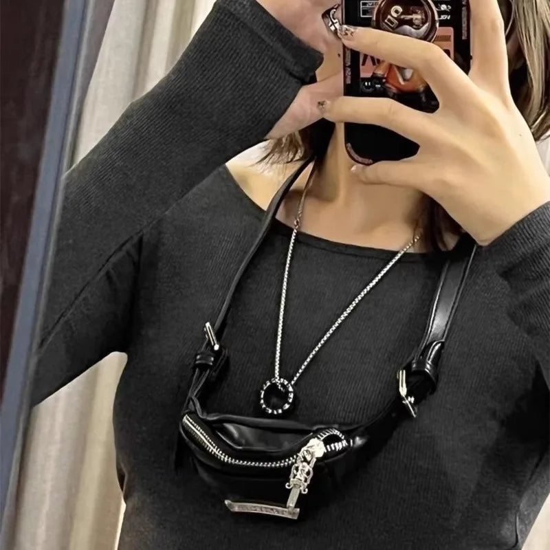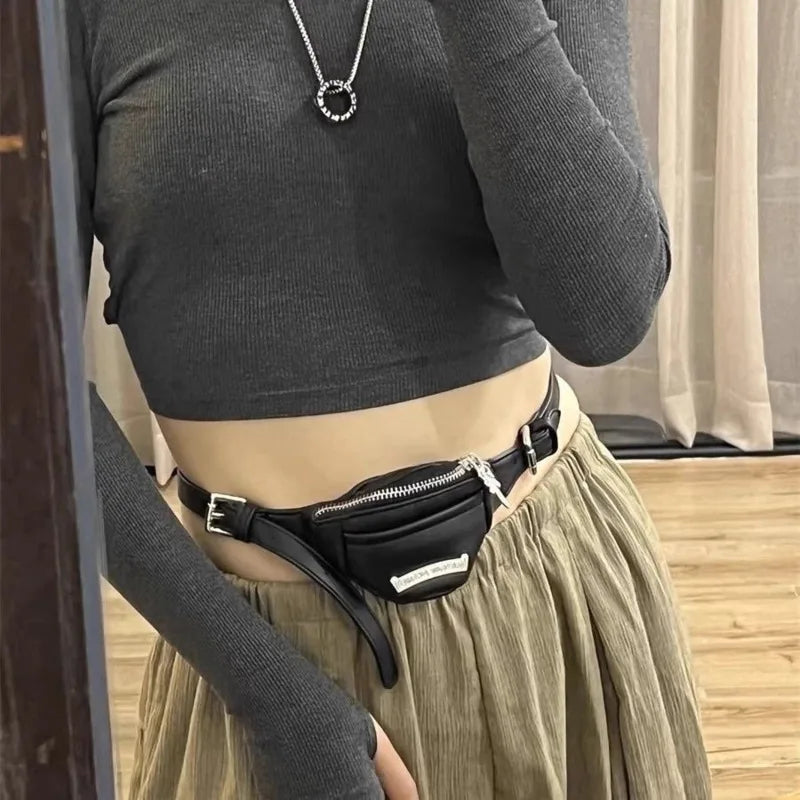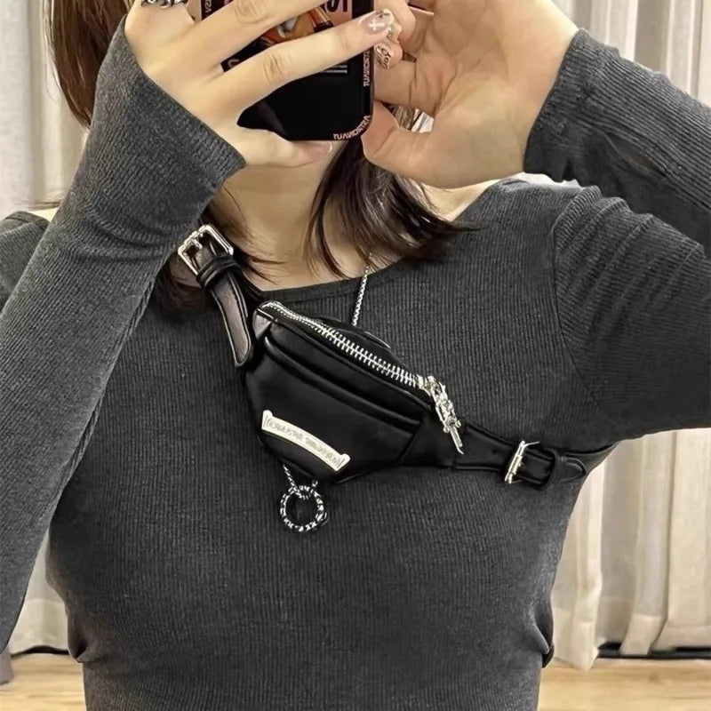An edgy micro-bag crafted from smooth PU leather, designed to keep your essentials tight in one zip. Wear it on your wrist or sling it crossbody with the adjustable strap—it’s a bold, urban take on hands-free style.