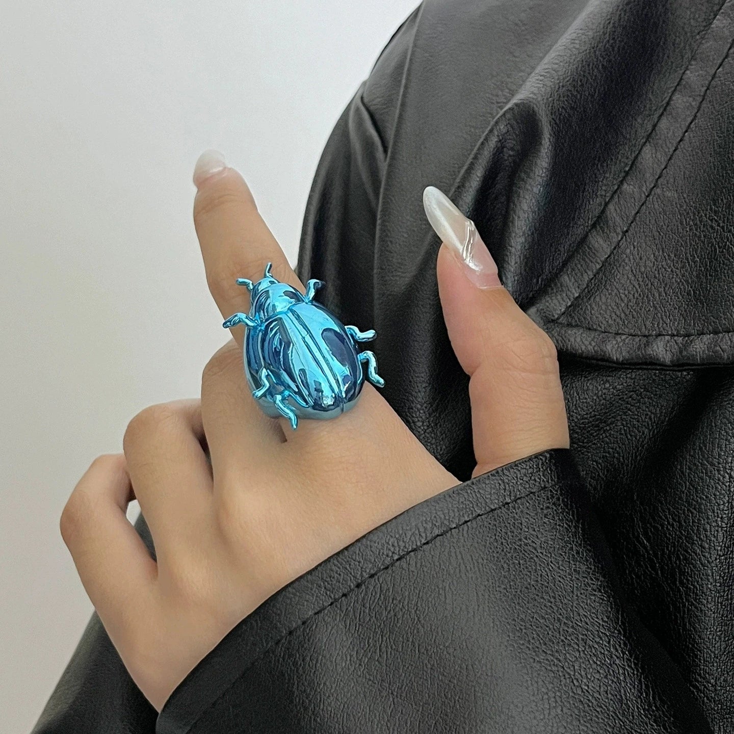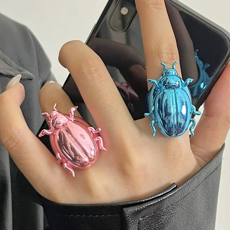 Meet Scarabella, an oversized, high‑gloss beetle ring that bites into the light and steals every glance. Cast in lightweight alloy with a bold enamel sheen, this adjustable statement piece is pure dopamine jewelry for hands that love drama.