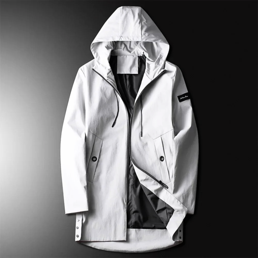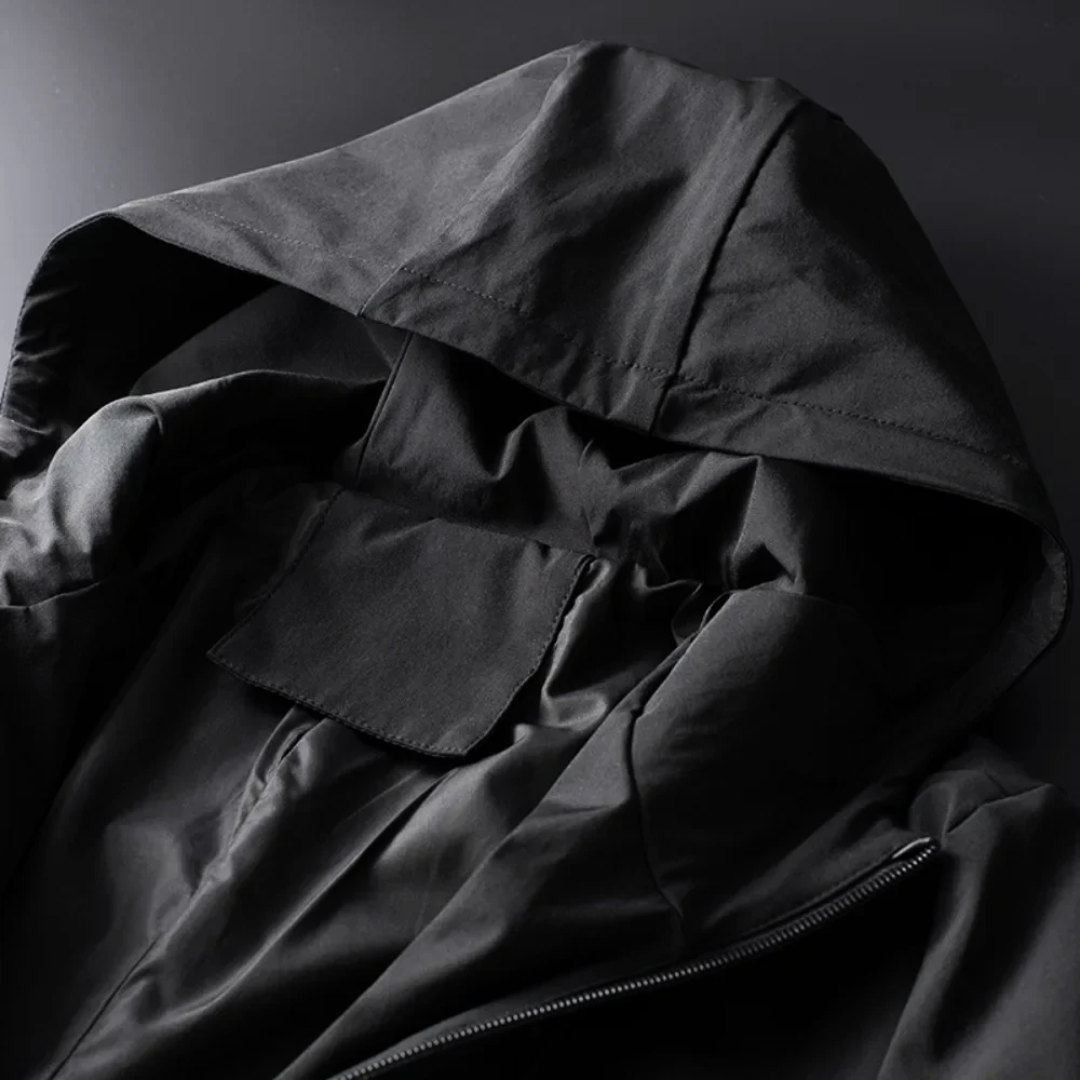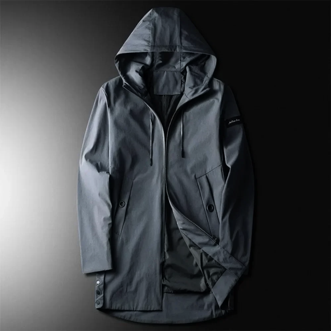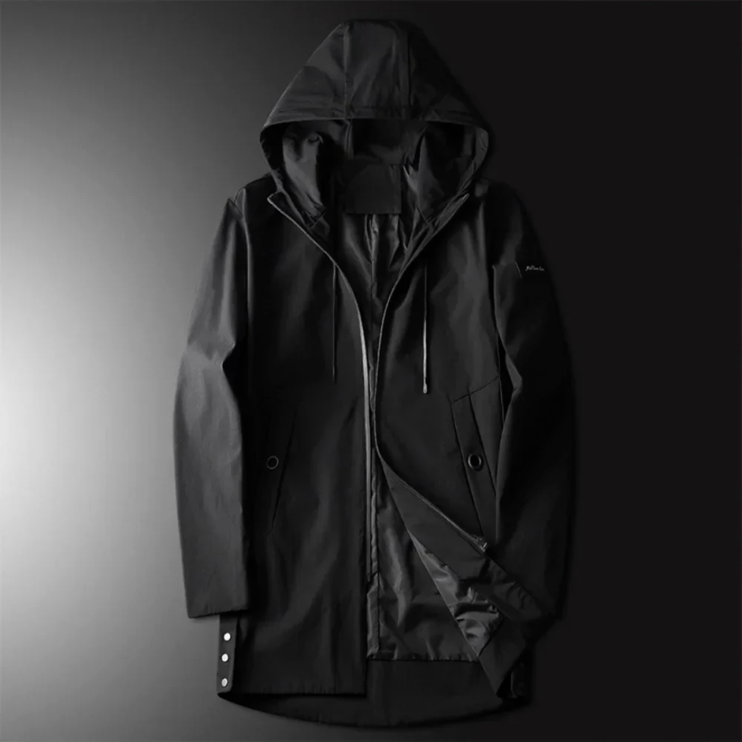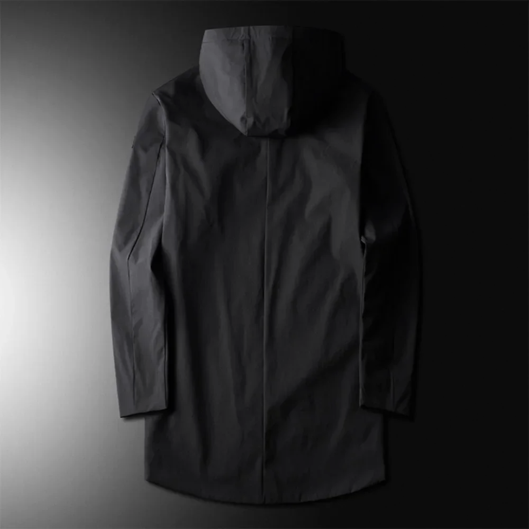 Whether you're navigating city streets or venturing into nature, the Sentinel Windbreaker is your perfect companion for transitional weather. Its lightweight design and hooded silhouette provide protection from unexpected breezes and light rain, while the long coat style adds a touch of sophistication to your everyday look.