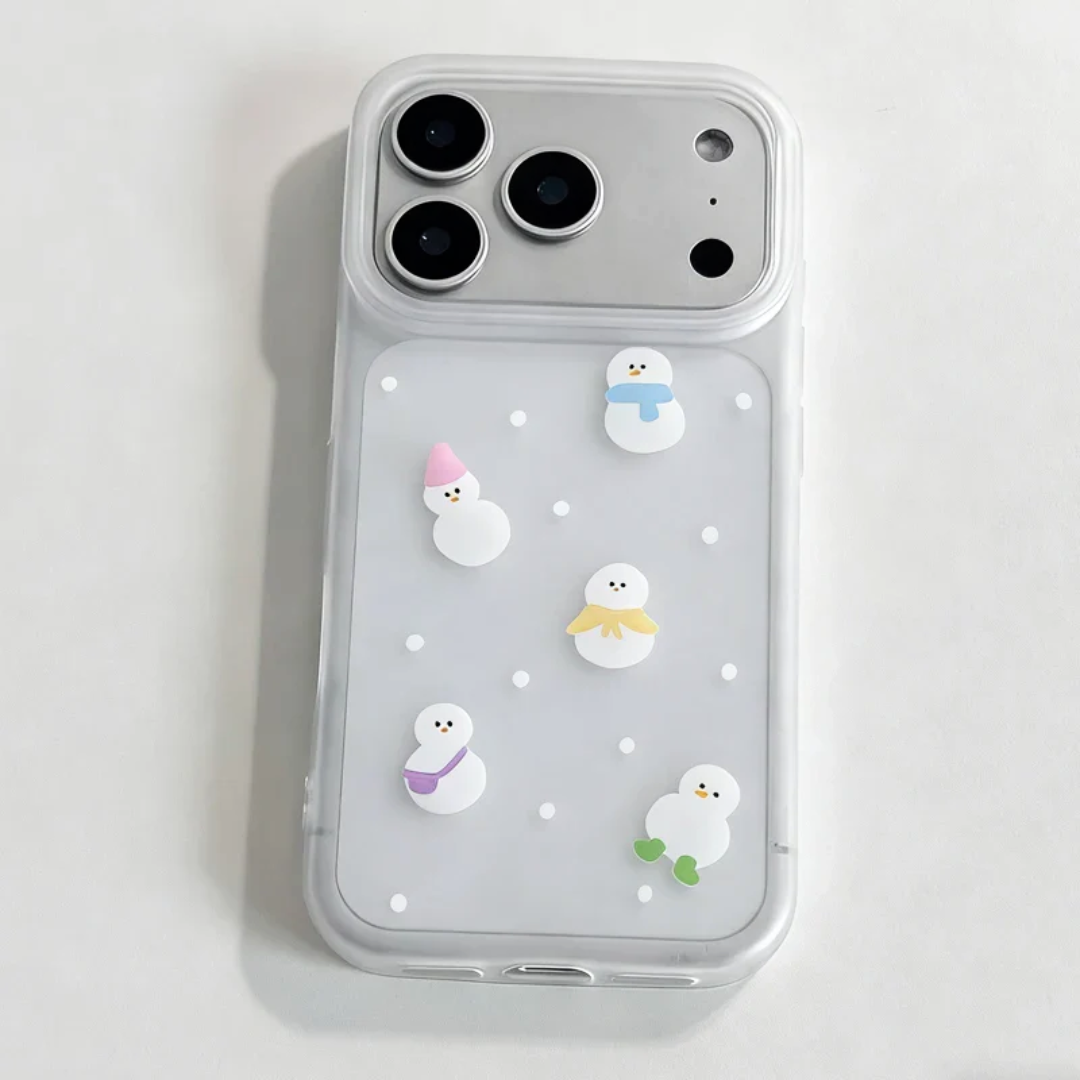 Tiny snowmen in colorful scarves float over a soft, frosted clear back, giving your phone a cozy “winter sweater” look without hiding the original color. The slim shock‑absorbing shell keeps edges protected while still feeling light and comfortable in your hand all season long.