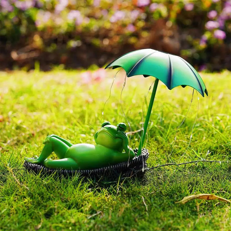 - Whimsical Design: Hand-painted frog & iron umbrella