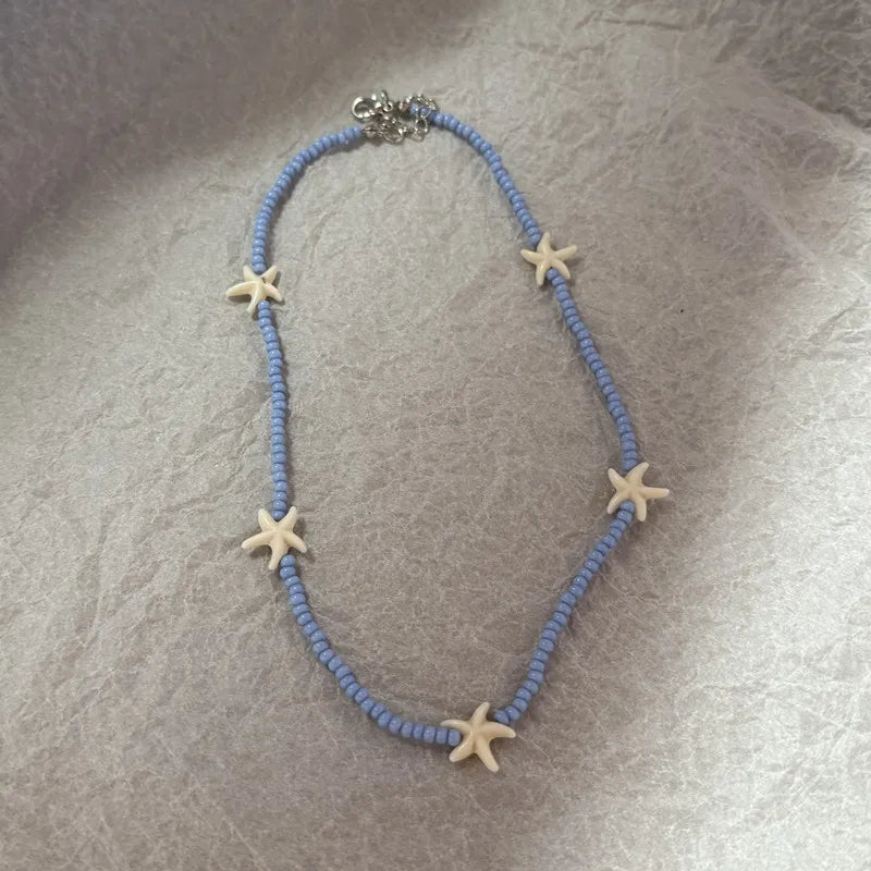Hand‑strung seed beads, mother‑of‑pearl stars, and candy‑hued crystals twist seaside nostalgia into a luxe, adjustable 14–16 in shimmer that feels one‑of‑one.