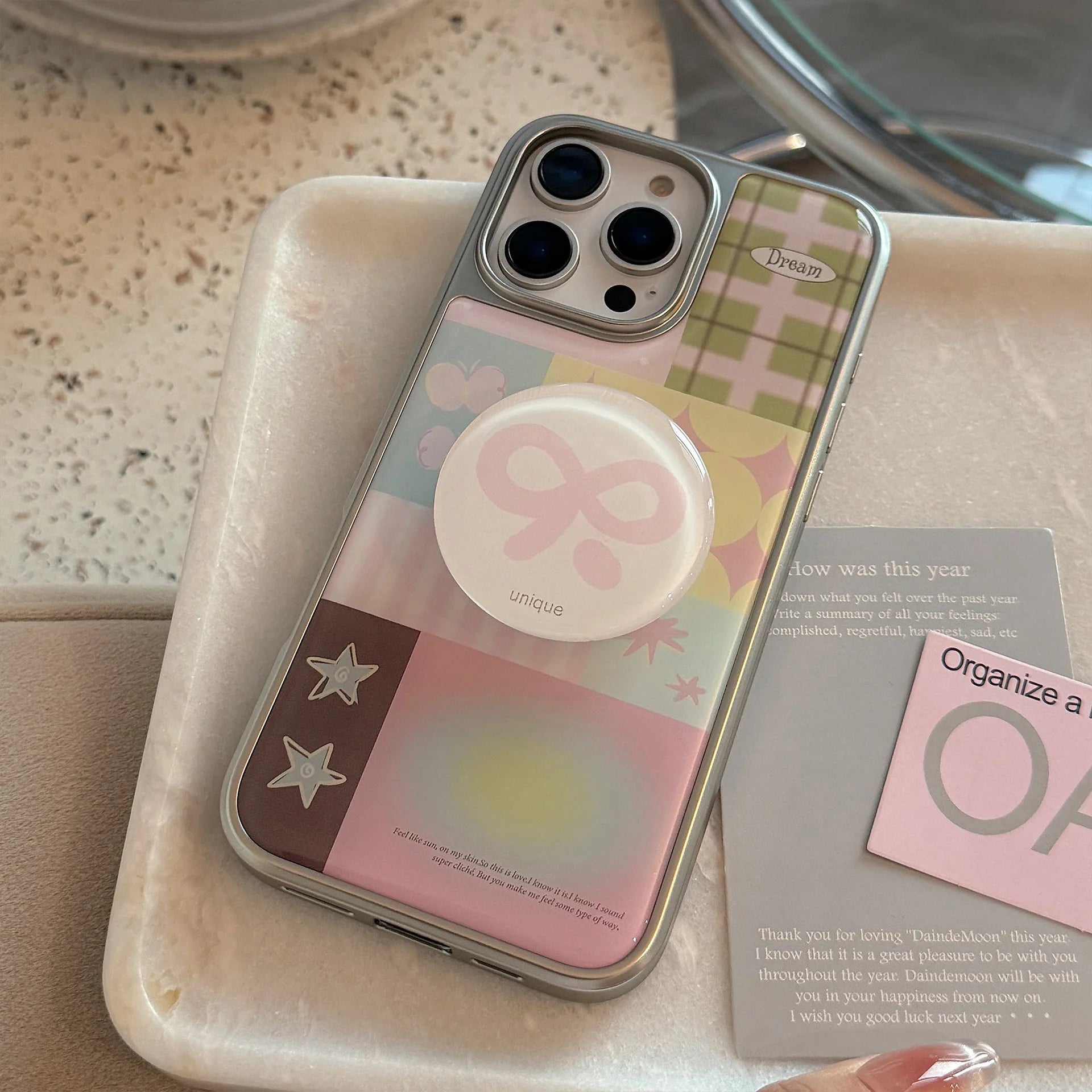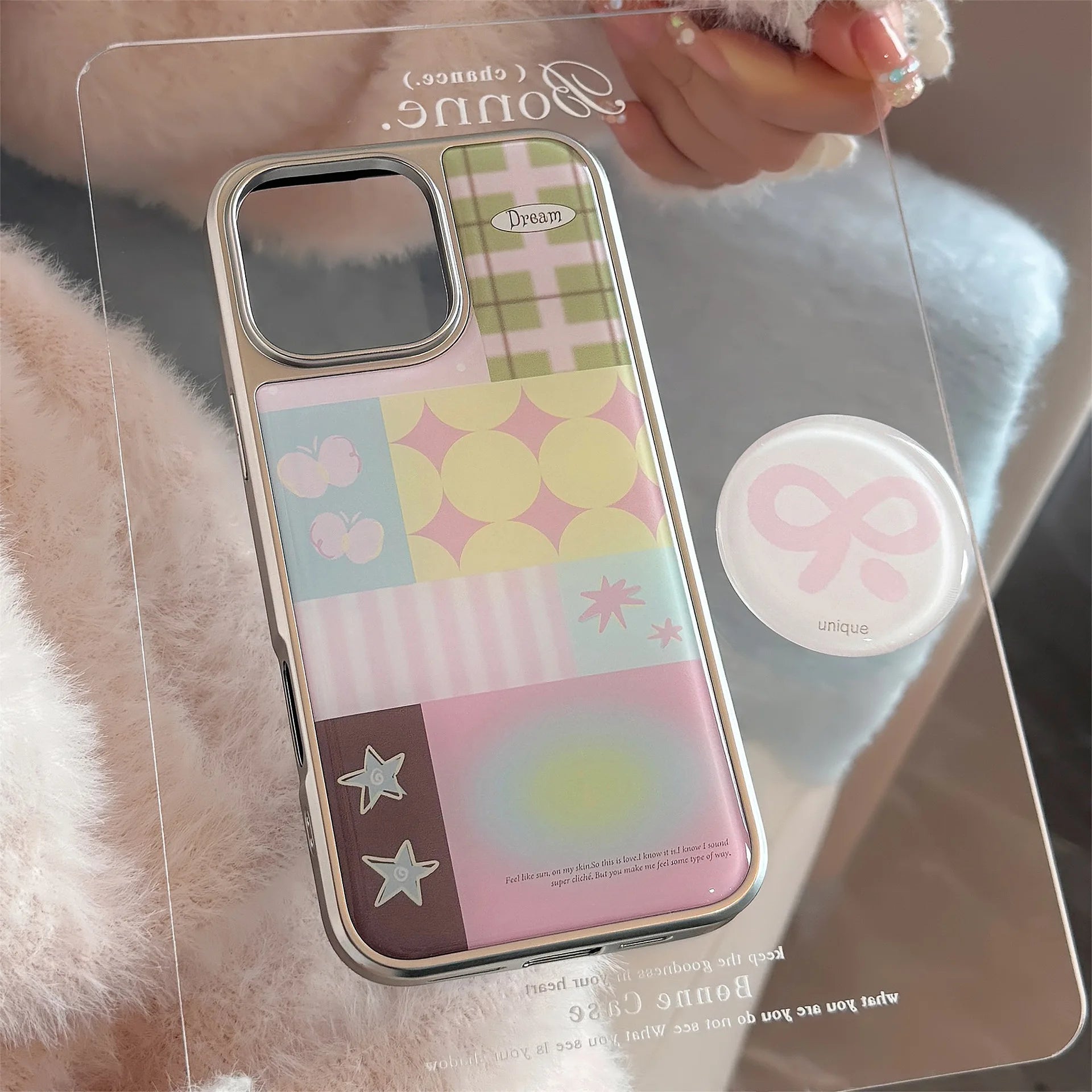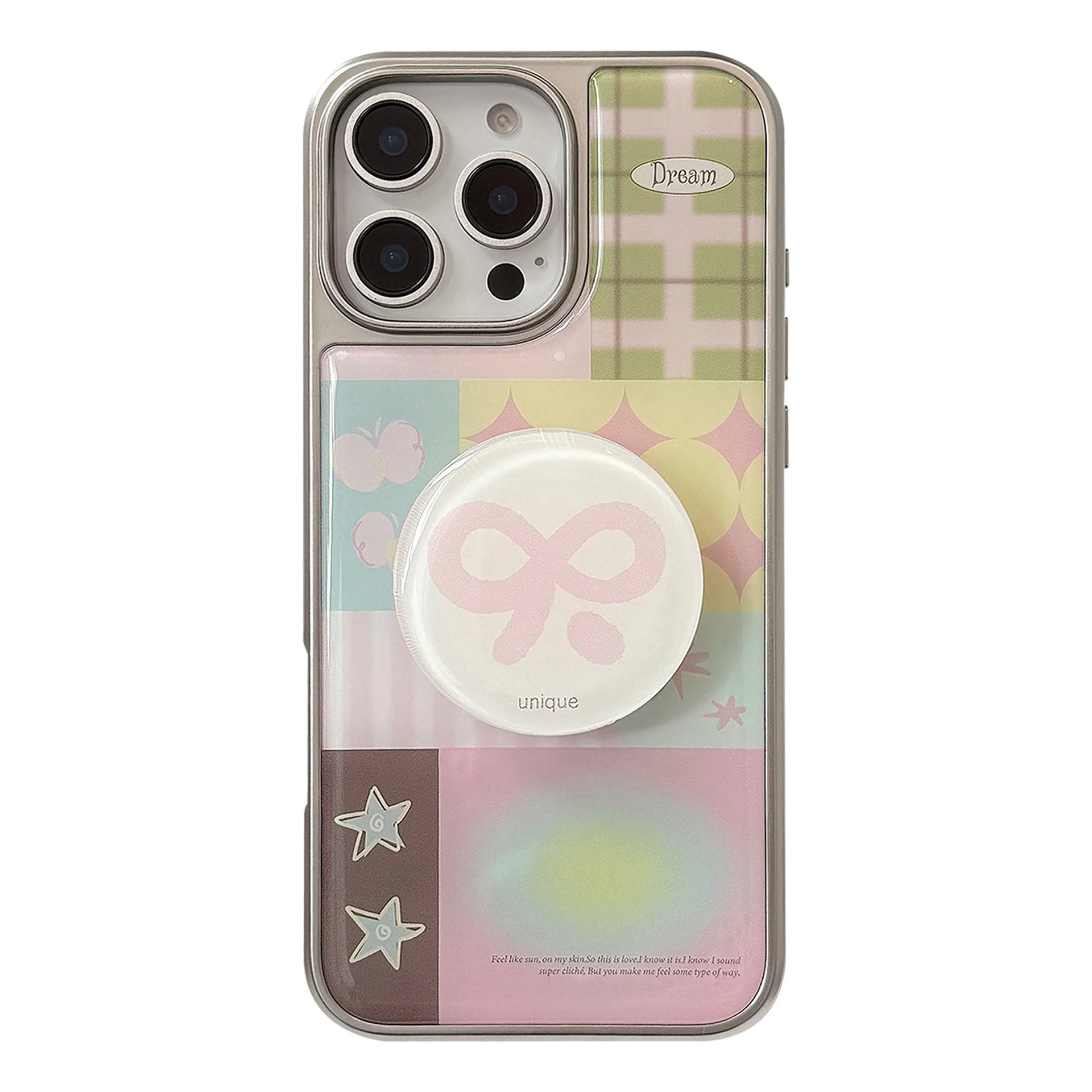 Hand‑poured epoxy tiles in misty pastels float within a crystal‑clear shell, while a removable satin‑finish bow stand adds heirloom charm to modern tech. Slip it on and your phone becomes a pocket‑sized objet d’art—ripe for reels, stories, and admiring glances.