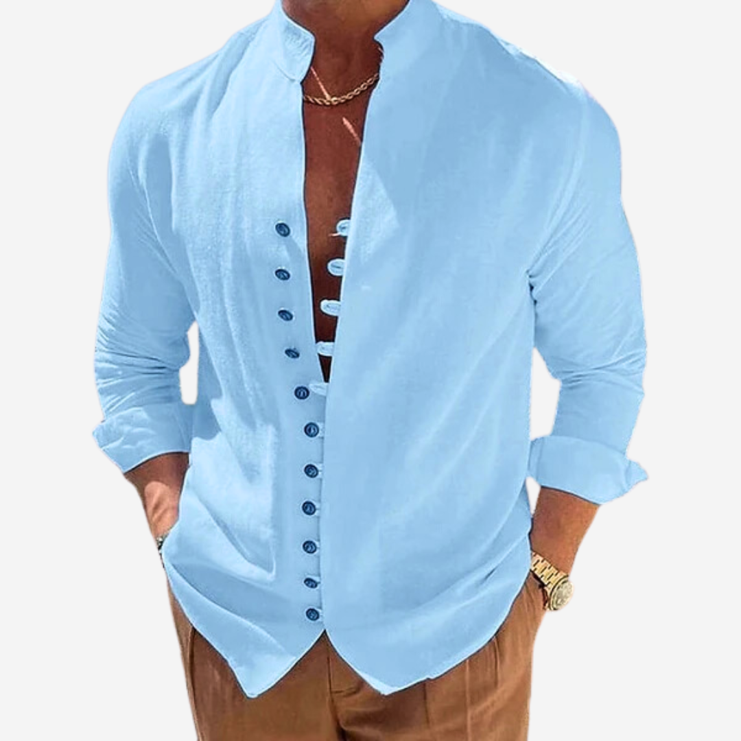 The Tom Adams Buttoned Linen-Blend Shirt embodies the perfect blend of sophistication and comfort. Made with a premium linen-blend fabric, it offers a lightweight and breathable experience, ideal for any occasion.