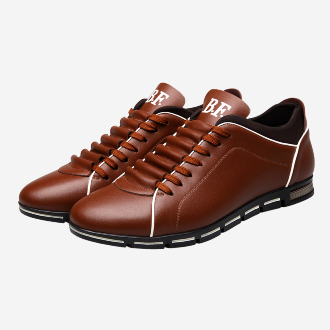 Introducing the Barclay Flanders Sneakers, an exquisite piece of footwear crafted with style and sophistication. These oxford-style sneakers feature a sleek and modern design made from PU leather, with the letters B.F. proudly displayed on the tongue. The low profile design is perfect for everyday wear, while the slip-on design is easy and comfortable to wear.