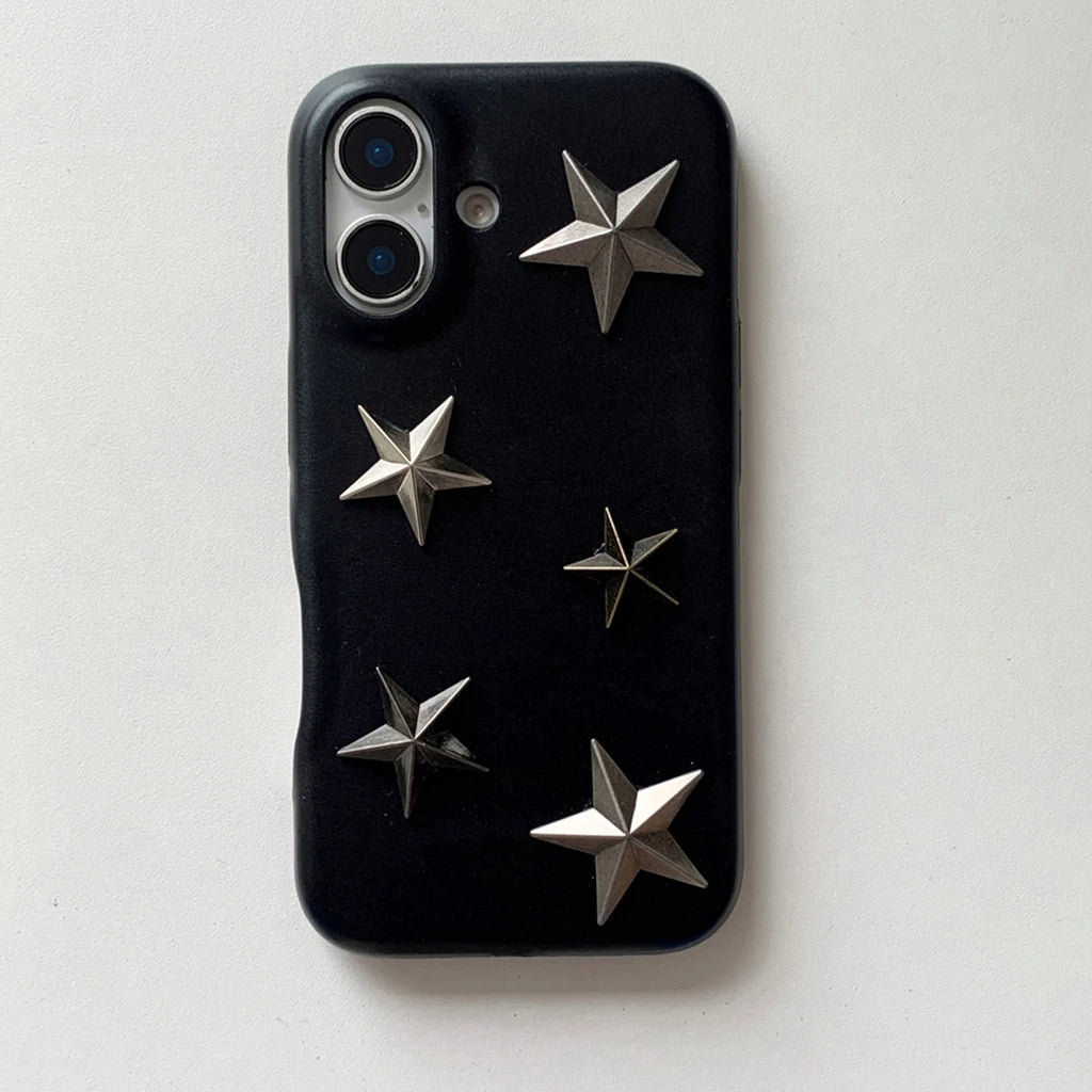 Raw‑indigo selvedge wraps a feather‑slim shell, hand‑set with antiqued brass stars that catch the light like city neon against midnight denim.