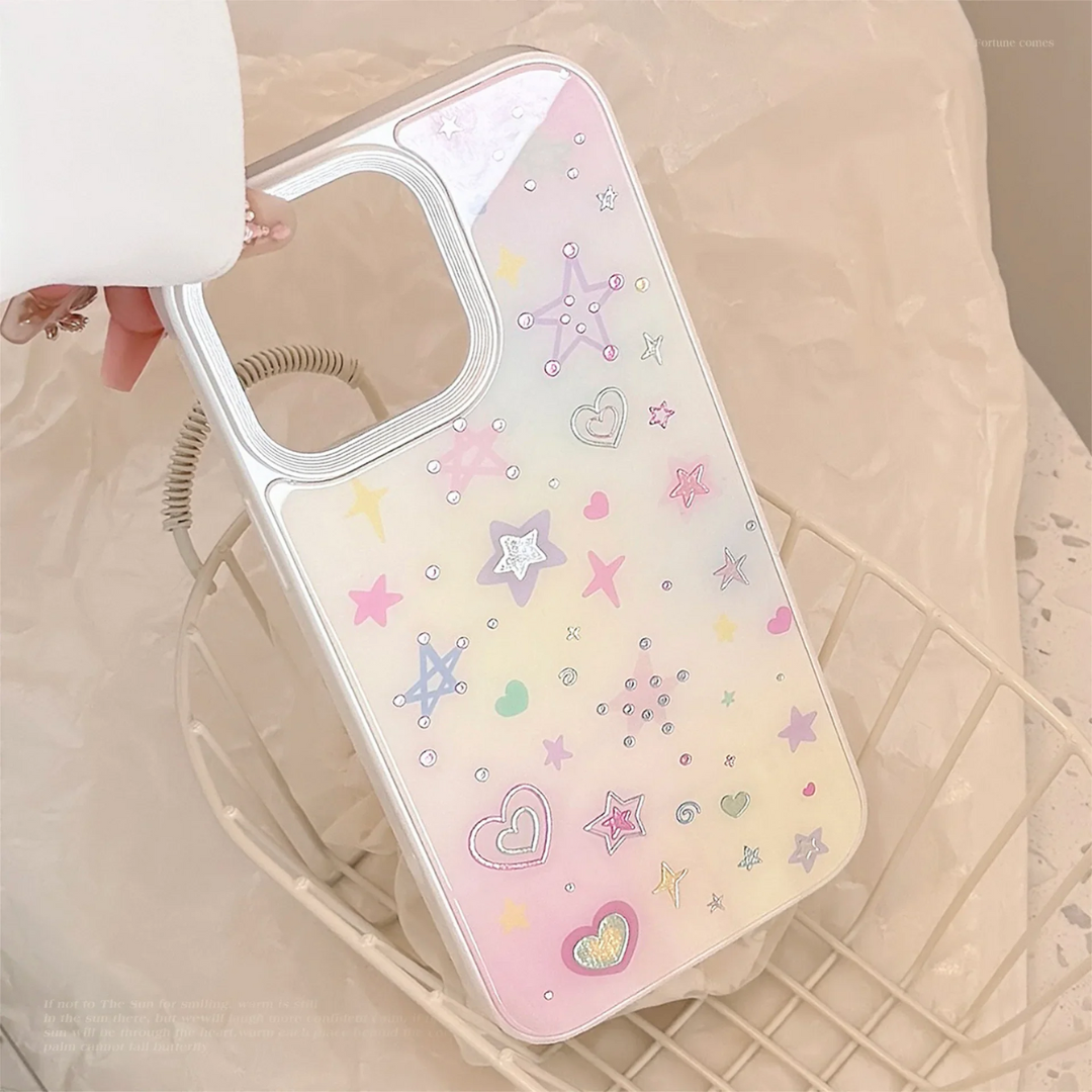 Starlite Dream swathes your iPhone in a candy‑cloud ombré of pastel stars and hearts, sealed beneath a glossy UV print that won’t flake or fade. The slim, anti‑yellowing TPU shell cushions drops while its raised bezel keeps lenses and screen safely lifted.